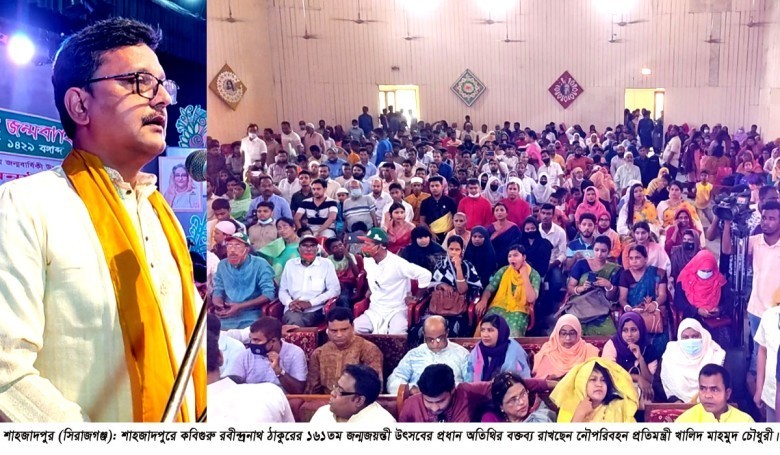 ‘কবিগুরু রবীন্দ্রনাথ ঠাকুর একজন বংশীয় জমিদার হয়েও তিনি ছিলেন সাধারন মানুষের জন্য নিবেদিত প্রাণ। কবিগুরু শুধু একজন কবিই নন, তিনি একজন মহাপুরুষও ! কবিগুরুকে নিয়ে বক্তব্য দেয়া আমার মতো মানুষের পক্ষে দুঃসাধ্য ব্যাপার।’ রোববার (৮ মে) দুপুরে সিরাজগঞ্জের শাহজাদপুর রবীন্দ্র কাছারিবাড়ি অডিটোরিয়ামে কবিগুরু রবীন্দ্রনাথ ঠাকুরের ১৬১তম জন্মজয়ন্তী উপলক্ষে আয়োজিত তিন দিনব্যাপী বর্ণাঢ্য অনুষ্ঠানমালার উদ্বোধনী দিনে প্রধান অতিথির বক্তব্যে নৌ-পরিবহন প্রতিমন্ত্রী খালিদ মাহমুদ চৌধুরী এসব কথা বলেন।