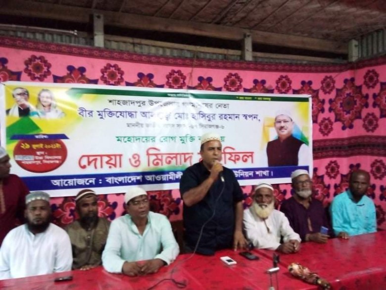 সিরাজগঞ্জ -৬ শাহজাদপুর আসনের সংসদ সদস্য, সাবেক শিল্প উপ- মন্ত্রী ও শাহজাদপুর উপজেলা আওয়ামী লীগের সভাপতি আলহাজ্ব হাসিবুর রহমান স্বপন সম্প্রতি করোনা পজিটিভ নিয়ে রাজধানীর একটি হাসপাতালে চিকিৎসাধীন থাকায় আজ শুক্রবার সকাল ৯ টায় শাহজাদপুর উপজেলার ৫ নং গালা ইউনিয়ন আওয়ামী লীগের উদ্যোগে বেনুটিয়া উচ্চ বিদ্যালয় প্রাঙ্গনে রোগ মুক্তি কামনায় দোয়া মাহফিল অনুষ্ঠিত হয়। ৬ নং ওয়ার্ড আওয়ামী লীগের সভাপতি মোজাম্মেল হকের সভাপতিত্বে ইউপি সদস্য বাবুল আক্তারের সঞ্চালনায় উক্ত দোয়া মাহফিলে প্রধান অতিথি ছিলেন গালা ইউনিয়ন আওয়ামী লীগের সংগ্রামী সাধারণ সম্পাদক ও আসন্ন নির্বাচনে চেয়ারম্যান পদে নৌকার মনোনয়ন প্রত্যাশী মোঃ আবুল হোসেন।