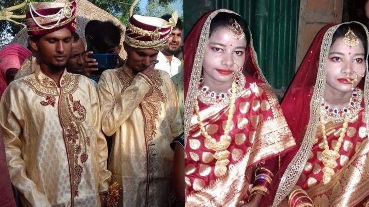 দুই যমজ ভাই আল আমিন ও আমিনুল ইসলামের সঙ্গে ১ লাখ টাকা মোহরানায় যমজ বোন ফাতেমা ও ফারজানা ইসলামের বিয়ে হয়। ২২ জুলাই অনুষ্ঠিত এই বিয়েতে দাওয়াত না পেলেও অনেকে এসেছেন। এমনই একজন রফিকুল ইসলাম বলেন, ‘যমজের সঙ্গে যমজের বিয়ে, বিষয়টি ভিন্নরকম। দাওয়াত না থাকলেও বিষয়টি অন্য রকম হওয়ায় সেখানে গিয়ে ঘুরে এসেছি।’ বেশ ভালোই লেগেছে। আলাদাভাবে দুই বোন এবং দুই ভাইয়ের বিয়ে হচ্ছে তা-ও একই অনুষ্ঠানের মাধ্যমে। ২৭ জুলাই বিয়ের ছবি ফেসবুকে ভাইরাল হলেও দুই যমজ দম্পতিকে শুভেচ্ছায় ভাসিয়েছেন নেটিজেনরা।