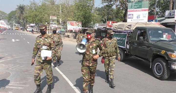 বিধিনিষেধ বাস্তবায়নে পুলিশ, র্যাব, বিজিবির পাশাপাশি ‘আর্মি ইন এইড টু সিভিল পাওয়ার’ বিধানের আওতায় মাঠে আছে সশস্ত্রবাহিনী। জনসাধারণকে অতি জরুরি প্রয়োজন ছাড়া বাইরে যেতে নিষেধ করা হচ্ছে। রাস্তায় বেরিয়ে যৌক্তিক ব্যাখ্যা দিতে না পারলে করা হচ্ছে গ্রেফতার জরিমানা।