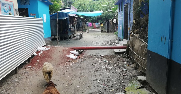 পোরজনা গুচ্ছ গ্রামের প্রবেশ পথে