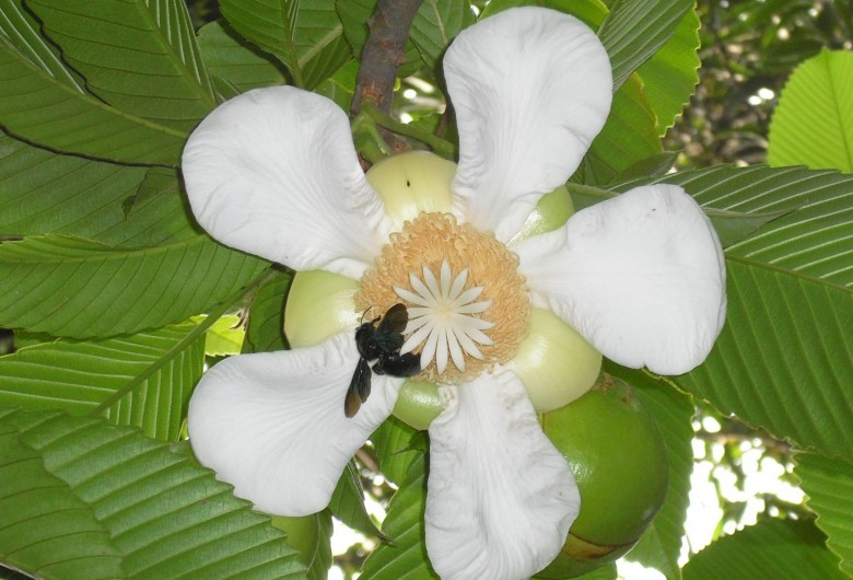 শাহজাদপুর (সিরাজগঞ্জ): শাহজাদপুর পৌর এলাকার মণিরামপুর গ্রামে একটি চালতা গাছে ফোঁটা ফুল।