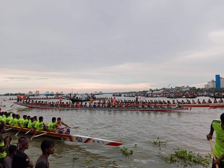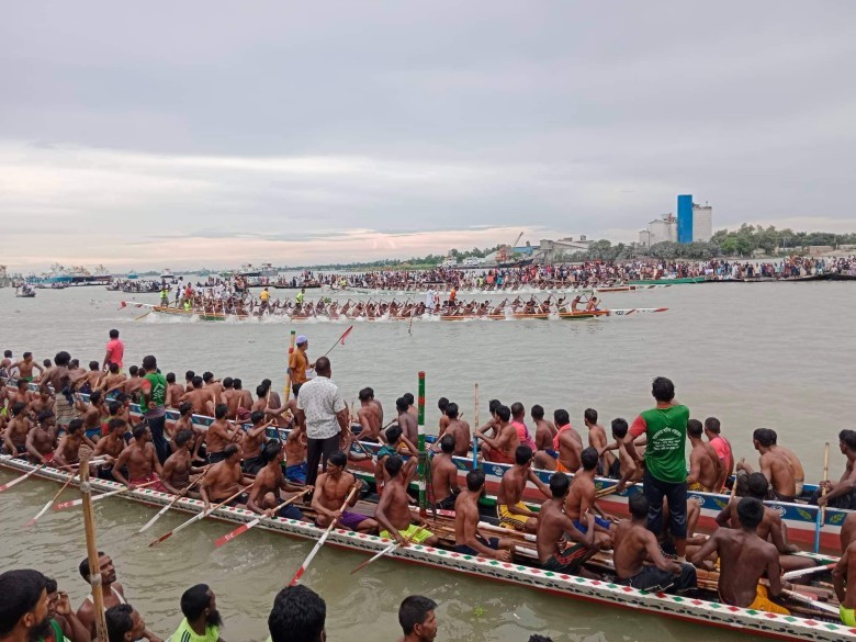 ঐতিহ্যবাহি নৌকা বাইচ প্রতিযোগিতার স্থান বড়াল নদীর বাঘাবাড়ি বন্দর অংশ সেজে উঠেছিল রঙ্গিন সাজে। ‘বাংলার বাঘ, ‘করম আলী এক্সপ্রেস’ ‘নাসির এক্সপ্রেস, একতা এক্সপ্রেস, ‘মায়ের দোয়া এক্সপ্রেস’ বাটুল এক্সপ্রেস, উড়ন্ত বলাকাসহ বাহারি নামের নৌকা ছুটে চলেছে নদীর এপ্রান্ত থেকে ওপ্রান্তে। সাথে সাথে ছুটছে যাত্রিবাহি শত শত ইঞ্চনচালিত নৌকা।
