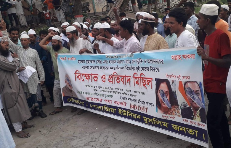 রাসুলের অপমান সইবোনা সইবোনা, ইসলামের শত্রুরা হুসিয়ার সাবধান এই শ্লোগানে শ্লোগানে ইসলাম ধর্মের শেষ নবী মহানবী হযরত মুহাম্মদ (সাঃ)-ও হযরত আয়শা (রাঃ)কে কুটুক্তি ও অবমাননাকর বক্তব্য দেওয়ায় ভারতের ক্ষমতাসীন দল বিজেপির দুই নেতার বিরুদ্ধে শাহজাদপুরে পোতাজিয়ায় বিক্ষোভ করেছে পোতাজিয়া ইউনিয়নের মুসলিম জনতা।