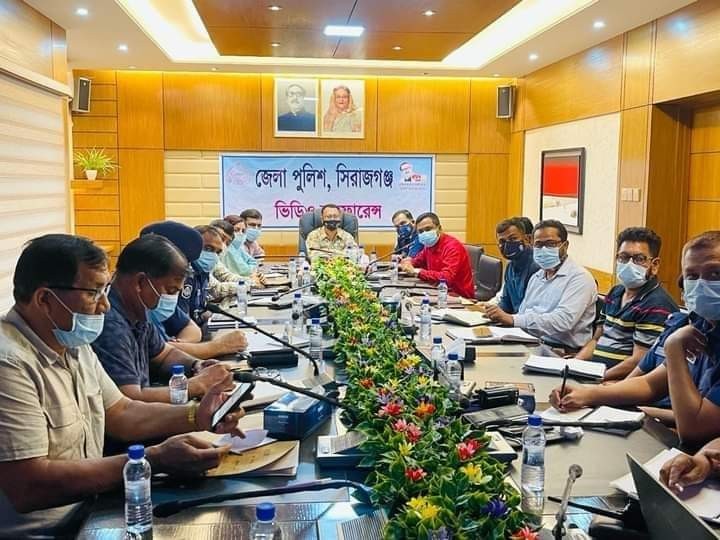 উত্তরবঙ্গের প্রবেশদ্বার সিরাজগঞ্জে আসন্ন পবিত্র ঈদ-উল-আযহা উপলক্ষে মহাসড়কে যানজট নিরসনে খানাখন্দ মেরামতকল্পে শনিবার(১০জুলাই) সকালে সিরাজগঞ্জ পুলিশ সুপারের কার্যালয়ের সম্মেলন কক্ষে জনাব হাসিবুল আলম, বিপিএম, পুলিশ সুপার, সিরাজগঞ্জ মহোদয়ের সভাপতিত্বে এক মত বিনিময় সভা অনুষ্ঠিত হয়।