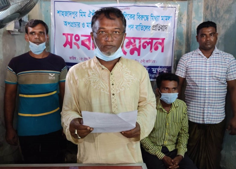সিরাজগঞ্জ শাহজাদপুর উপজেলার মিম-ঐশী এন্টারপ্রাইজের মালিক মোঃ শহিদুল ইসলাম মুক্তার বিরুদ্ধে মিথ্যা মামলা, অপপ্রচার ও মালিক সমিতির সদস্যপদ বাতিলের প্রতিবাদে রবিবার(২৫জুলাই) বেলা ১১ টায় উপজেলার বিসিক বাসস্ট্যান্ডে মিম-ঐশি এন্টারপ্রাইজ কাউন্টারে সংবাদ সম্মেলন করেছে ভুক্তভূগী। সংবাদ সম্মেলনে লিখিত বক্তব্য পাঠ করেন মিম-ঐশী এন্টারপ্রাইজের মালিক মোঃ শহিদুল ইসলাম মুক্তা।