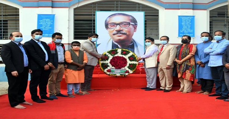 রবীন্দ্র বিশ্ববিদ্যালয়, বাংলাদেশ-এ জাতির পিতা বঙ্গবন্ধু শেখ মুজিবুর রহমান-এর স্বদেশ প্রত্যাবর্তন দিবস উদযাপন উপলক্ষ্যে বিশ্ববিদ্যালয়ের অস্থায়ী একাডেমিক ভবন ১-এ জাতির পিতার প্রতিকৃতিতে শ্রদ্ধাঞ্জলি নিবেদন করেন ভাইস-চ্যান্সেলর প্রফেসর ড. মোঃ শাহ্ আজম।