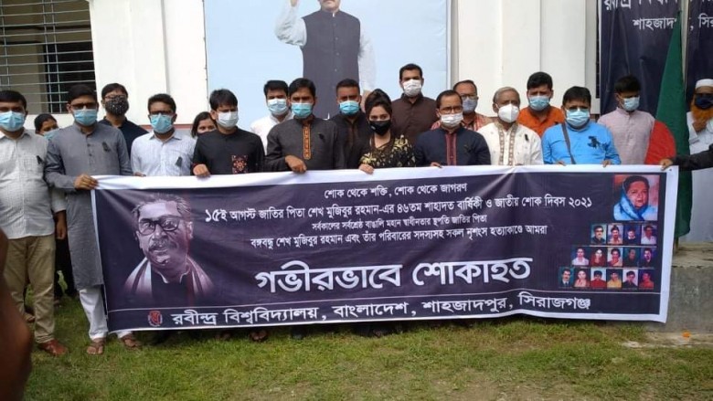 রবীন্দ্র বিশ্ববিদ্যালয়, বাংলাদেশ বঙ্গবন্ধু শেখ মুজিবুর রহমান-এর ৪৬তম শাহাদতবার্ষিকী ও জাতীয় শোক দিবস পালন হয়েছে।