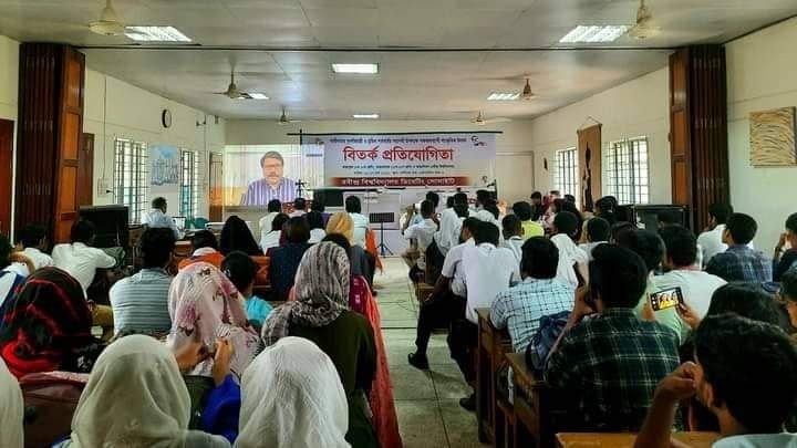 রবীন্দ্র বিশ্ববিদ্যালয়ে ‘স্বাধীনতার সুবর্ণজয়ন্তী ও মুজিব শতবর্ষ’-এর সমাপনী উপলক্ষ্যে চার দিনব্যাপী বিতর্ক প্রতিযোগিতা শুরু হয়েছে। রবীন্দ্র বিশ্ববিদ্যালয় ডিবেটিং সোসাইটির উদ্যোগে বিতর্ক প্রতিযোগিতা ২০ মার্চ সকাল ১০ টায় শুরু হয়। এ প্রতিযোগিতা উদ্বোধন করেন রবীন্দ্র বিশ্ববিদ্যালয়ের ভাইস-চ্যান্সেলর প্রফেসর ড. মোঃ শাহ্ আজম। তিনি জাতির পিতা বঙ্গবন্ধু শেখ মুজিবুর রহমান-এর গৌরবোজ্জ্বল রাজনৈতিক এবং সংগ্রামী জীবনের কথা এবং বাংলাদেশের অভ্যুদয়ে জাতিকে একটি রক্তক্ষয়ী মুক্তি সংগ্রামে যুক্ত করার জন্য বঙ্গবন্ধু যে অনুপ্রেরণা জুগিয়েছেন তা তুলে ধরেন। এ বিতর্ক প্রতিযোগিতার মাধ্যমে শিক্ষার্থীরা আন্তর্জাতিক পরিমন্ডলে অবদান রাখতে পারবেন বলে বিশ্ববিদ্যালয়ের ভাইস-চ্যান্সেলর আশাবাদ ব্যক্ত করেন। বিতর্ক প্রতিযোগিতায় বিভিন্ন স্কুল, কলেজ থেকে আগত শিক্ষক ও শিক্ষার্থীবৃন্দ, রবীন্দ্র বিশ্ববিদ্যালয়ের শিক্ষক ও শিক্ষার্থীবৃন্দ এবং অনুষ্ঠানের আয়োজকদের ধন্যবাদ জানিয়ে তিনি তাঁর বক্তব্য শেষ করেন।