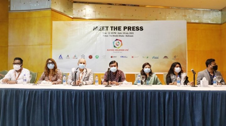 রাজধানীর হোটেল ওয়েস্টিনে আলেশা মার্ট কর্তৃপক্ষের সংবাদ সম্মেলনে।