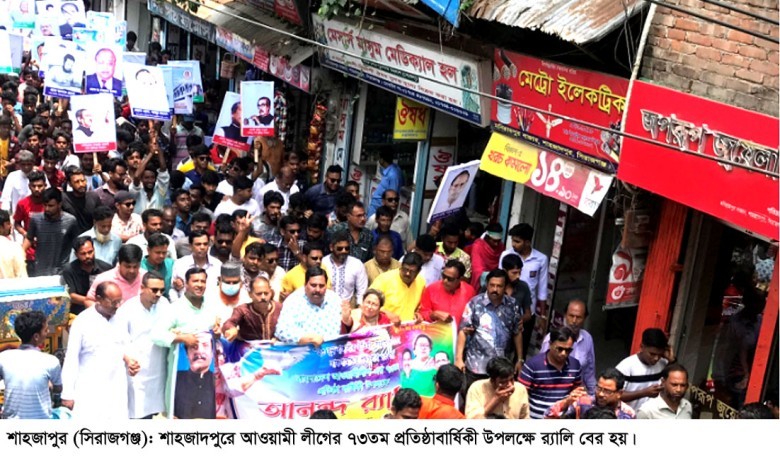 সিরাজগঞ্জের শাহজাদপুরে বর্ণাঢ্য আয়োজনে দিনব্যাপি বাংলাদেশ আওয়ামী লীগের ৭৩তম প্রতিষ্ঠাবার্ষিকী পালিত হয়েছে ।