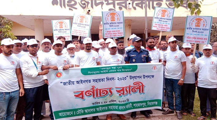 শুক্রবার (২৮ এপ্রিল) শাহজাদপুর চৌকি আদালত আইনগত সহায়তা প্রদান কমিটির আয়োজনে শাহজাদপুর চৌকি আদালত চত্ত্বর থেকে দিবসটি উপলক্ষে বর্ণাঢ্য র্যালি শহরের প্রধান সড়কগুলো প্রদক্ষিণ করে একই স্থানে এসে শেষ হয়। পরে উপজেলা আইনজীবী সমিতি মিলনায়তনে যুগ্ম দায়রা জজ মামুন-অর-রশিদ এর সভাপতিত্বে আলোচনা সভা অনুষ্ঠিত হয়।