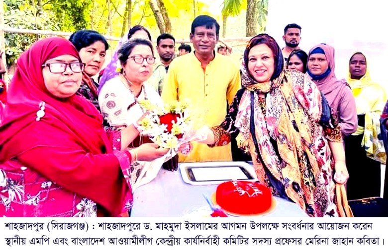 সিরাজগঞ্জের শাহজাদপুরে ড. মাহমুদা ইসলামের আগমন উপলক্ষে শুভেচ্ছা জানান এবং সংবর্ধনার আয়োজন করেন স্থানীয় এমপি ও বাংলাদেশ আওয়ামী লীগ কেন্দ্রীয় কার্যনির্বাহী কমিটির সদস্য প্রফেসর মেরিনা জাহান কবিতা। মঙ্গলবার দুপুরে ড. মাহমুদা ইসলামের শাহজাদপুর আগমন উপলক্ষে পথিমধ্যে বিশাল মোটরসাইকেল শোভাযাত্রা নিয়ে শুভেচ্ছা জানানো হয়। এদিন পৌর সদরের শক্তিপুরস্থ নূরজাহান ভবনে বিভিন্ন সংগঠনের নেতৃবৃন্দ ফুল দিয়ে ড. মাহমুদা ইসলামকে বরণ করে নেন। এসময় তিনি তৃণমূল নারীদের সাথে মতবিনিময় করেন।