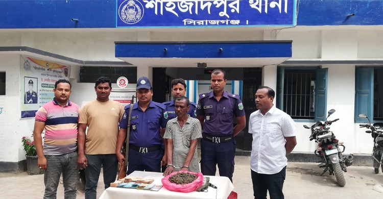 শাহজাদপুর থানা সূত্রে জানা যায়, গোপন সংবাদের ভিত্তিতে বুধবার(২০এপ্রিল) দিবাগত রাতে এসআই কাঞ্চন কুমার প্রামানিকের এর নেতৃত্বে এএসআই সুমন চন্দ্র মন্ডল সঙ্গীয় ফোর্সসহ পুলিশের একটি চৌকস দল উপজেলার পৌর সদরের আইগবাড়ী পাড়কোলা দক্ষিনপাড়া মহল্লায় এক মাদক বিরোধী বিশেষ অভিযান পরিচালনা করে এক কেজি পাঁচশত গ্রাম গাঁজা ও নগত একানব্বই হাজার টাকাসহ নিজ বাড়ী থেকে মাদক ব্যবসায়ী নবীন শেখকে হাতেনাতে গ্রেফতার করে থানা পুলিশ।