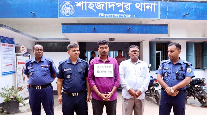 শনিবার(৫আগষ্ট) দুপুরে এবিষয়ে শাহজাদপুর থানার ভারপ্রাপ্ত কর্মকর্তা(ওসি) নজরুল ইসলাম মৃধা প্রেস ব্রিফিং এর মাধ্যমে জানান, গতশুক্রবার সকালে বৃদ্ধ নারী মাধবী রানী ঘোষ প্রাতঃ ভ্রমন বের হলে শাহজাদপুর সরকারী কলেজের পিছনে হৃদয় তাকে মারধোর ও মেরে ফেলার ভয় দেখিয়ে তার কানের দুল ছিঁড়ে নিয়ে যায়। এতে ভুক্তভোগীর গুরুতর আহত ও কান ছিঁড়ে যাওয়ায় তিনটি সেলাই দেওয়া হয়। পরবর্তীতে ভুক্তভোগীর মেয়ে সাথি রানি থানায় লিখিত অভিযোগ দ্বায়ের করলে এসআই মোস্তোফার নেতৃত্বে অভিযান পরিচালনা করে ছিনতাইকারী হৃদয় কুন্ডু ও তিন আনা স্বর্ণের কানের দুল উদ্ধার করা হয়। তিনি আরও জানান, মামলা রুজু করিয়া হৃদয় কুন্ডুকে বিজ্ঞ আদালতে পাঠানো হয়েছে।