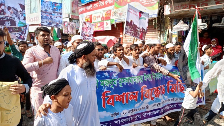 সিরাজগঞ্জ শাহজাদপুরে ফিলিস্তিনি মুসলমানদের উপর ইসরায়েলি বর্বরোচিত হামলার প্রতিবাদে বিক্ষোভ মিছিল ও প্রতিবাদ সমাবেশ অনুষ্ঠিত হয়েছে। মিছিলে অনেকে ফিলিস্তিনির পতাকা হাতে দেখা গেছে। এ সময় তারা ফিলিস্তিনকে সমর্থন জানিয়ে বিভিন্ন স্লোগান দিতে থাকে। এবং অনেকের হাতে আবার ফিলিস্তিনকে সমর্থন জানিয়ে ও ইসরাইলের বিরুদ্ধে বিভিন্ন লেখা সম্বলিত প্লাকার্ড দেখা যায়।