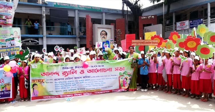 "আনন্দ নিয়ে পড়ব, সুন্দর ভবিষ্যত গড়ব" "প্রতিদিন স্কুলে যাই, লেখাপড়ায় বিভেদ নাই " এ প্রতিপাদ্য নিয়ে উপজেলা শিক্ষা অফিসের উদ্যোগে শনিবার(২৪সেপ্টেম্বর) সকালে সিরাজগঞ্জ শাহজাদপুরে মিনা দিবস উদযাপন উপলক্ষে আনন্দ র্যালি ও আলোচনা সভা অনুষ্ঠিত হয়ছে। র্যালিটি উপজেলা সদরের প্রধান প্রধান সড়ক প্রদক্ষিণ করে উপজেলা পরিষদ চত্বরে এসে শেষ হয়।