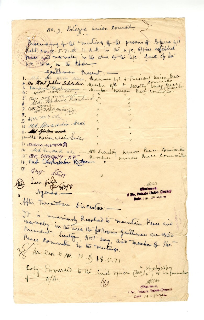 ১৯৭১ সালের ১৮ মে তারিখে শাহজাদপুরের পোতাজিয়া ইউসি’তে গঠিত পিস কমিটির তালিকা