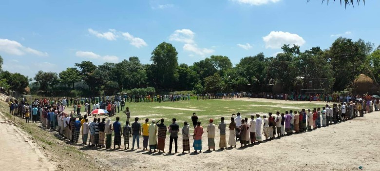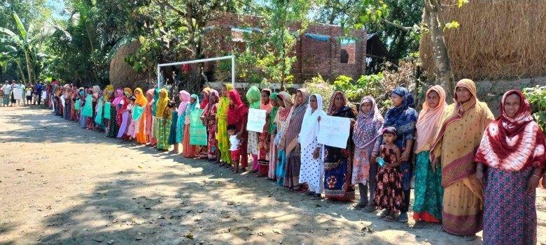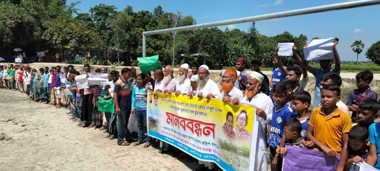 বৃহস্পতিবার (১৪ জুলাই) বেলা ১১টায় ঐতিহ্যবাহী বলদিপাড়া-হলদিঘর মাঠে এ মানববন্ধন অনুষ্ঠিত হয়। কয়েক পুরুষের শৈশব, কৈশোর, যৌবনের স্মৃতিমাখা শত বছরের ঐতিহ্যবাহী কয়েক গ্রামের একমাত্র খেলার মাঠটি রক্ষায় আশপাশের ছয়টি গ্রামের হাজারো নারী,পুরুষ, যুবক, বৃদ্ধা বাধভাঙ্গা স্রোতের মত এসে হাতে হাত রেখে সমস্ত রক্তচক্ষুর বিরুদ্ধে স্লোগান দিতে থাকে, 'বুকের রক্ত ঢেলে দিব তবু মাঠ ছাড়বো না।' এ সময় হাজরো জনতার মাথার উপর উত্তপ্ত রৌদ্র রেখে ঘাম ও অশ্রুতে এক আবেগঘন পরিবেশ সৃষ্টি হয়।