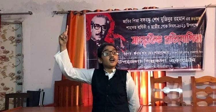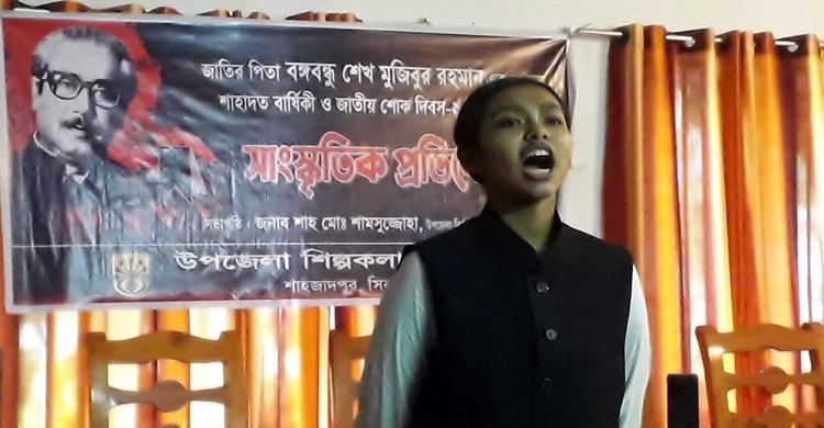 সিরাজগঞ্জের শাহজাদপুরে জাতির জনক বঙ্গবন্ধু শেখ মুজিবুর রহমান এর ৪৬তম শাহাদাত বার্ষিকী ও জাতীয় শোক দিবস পালন উপলক্ষে শাহজাদপুর উপজেলা শিল্পকলা একাডেমির আয়োজনে সাংস্কৃতিক প্রতিযোগিতা অনুষ্ঠিত হয়েছে।