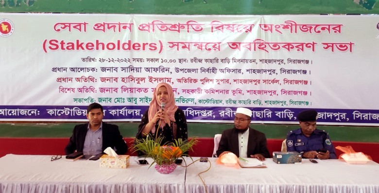 সিরাজগঞ্জ শাহজাদপুরে সেবা প্রদান প্রতিশ্রুতি বিষয়ে অংশীজনের(স্টেকহোল্ডারগণের) সমন্বয়ে অবহিতকরণ সভা অনুষ্ঠিত হয়েছে।