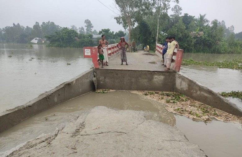 সিরাজগঞ্জের শাহজাদপুর উপজেলার জালালপুর ইউনিয়নের রূপসী-ঘাটাবাড়ি সড়ক বন্যার পানির চাপে ভেঙ্গে যাওয়ায় ৫ গ্রামের ৪ হাজার মানুষের সড়ক যোগাযোগ বিচ্ছিন্ন হয়ে পড়েছে।