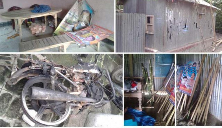 নিজস্ব প্রতিনিধি গতকাল শনিবার রাতে সিরাজগঞ্জের শাহজাদপুর উপজেলার নরিনা ইউনিয়নের আওয়ামীলীগ প্রার্থী ফজলুল হক (নৌকা) গ্রুপের সাথে আওয়ামীলীগের বিদ্রোহী প্রার্থী ফজলুল হক মন্ত্রী (আনারস) গ্রুপের মধ্যে হামলা সংঘর্ষকালে স্থানীয় আওয়ামীলীগ অফিস, একটি দোকান, ২টি বাড়ি, ১২টি মটরসাইকেল ভাংচুর, একটি মটরসাইকেলে অগ্নি সংযোগ ও ব্যাপক লুটপাটের ঘটনা ঘটে। এ সময় উভয় পক্ষের অন্তত ৭জন আহত হয়েছে। আহতরা হলেন, জহুরুল ইসলাম, ফারুক সরকার, হাজী আব্দুল কাদের, হারুন অর রশিদ, ফরিদুল ইসলাম, মিনা খাতুন, জরিনা খাতুন । এদেরকে শাহজাদপুর ও সিরাজগঞ্জ হাসপাতালে ভর্তি করে চিকিৎসা দেওয়া হচ্ছে। এ ঘটনায় আওয়ামীলীগ প্রার্থী ফজলুল হক বাদী হয়ে বিদ্রোহী প্রার্থী ফজলুল হক মন্ত্রী সহ ১২৪ জনের নাম উল্লেখ করে শাহজাদপুর থানায় একটি মামলা দায়ের করেছে। আবারো হামলা ও পুলিশি গ্রেফতার এড়াতে বিদ্রোহী প্রার্থী ফজলুল হক মন্ত্রী সহ তার ২শতাধিক সমর্থক এলাকা ছেড়ে আত্মগোপনে পালিয়ে রয়েছে। পুলিশ ও এলাকাবাসী সূত্রে জানা যায়, শনিবার সন্ধ্যায় নরিনা বাজারের একপাশে আওয়ামীলীগ থেকে মনোনয়ন বঞ্চিত নরিনা ইউনিয়ন আওয়ামীলীগের প্রচার সম্পাদক বিদ্রোহী প্রার্থী ফজলুল হক মন্ত্রীর নির্বাচনী জনসভা চলছিল। এ সময় শাহজাদপুর উপজেলা যুবলীগ নেতা আশিকুল হক দিনারের নেতৃত্বে ১৫/২০টি মটরসাইকেল ৩০/৩৫ জন নেতা কর্মী নরিনা বাজারে দলীয় প্রার্থীর নৌকা প্রতীকে ভোট চাইতে যাওয়ার সময় এই মটরসাইকে বহর থেকে কে বা কারা উস্কানি মূলক কথা বলার অভিযোগে সতন্ত্রপ্রার্থীর ২/৩শ লোক লাঠি সোঠা ও দেশী অস্ত্রসস্ত্র নিয়ে হামলা চালায়। এ হামলাকালে যুবলীগ নেতা আশিকুল হক দিনারের মটরসাইকেলে অগ্নিসংযোগ ও আরও ১০/১২টি মটরসাইকেল ভাংচুর করে। এ সময় দিনার সহ তার সমর্থকেরা প্রাণ ভয়ে ইরির জমির ভিতরে দৌড়ে পালিয়ে প্রাণ রক্ষা করে। এ হামলাকালে বিদ্রোহী প্রার্থী সমর্থকেরা নরিনা ইউনিয়ন আওয়ামীলীগ কার্যালয়ের আসবাবপত্রও ব্যাপক ভাংচুর করে। এ ঘটনার পর আওয়ামীলীগ প্রার্থী ফজলুল হকের লোকজন লাঠিসোঠা ও দেশীয় অস্ত্রসস্ত্র নিয়ে হামলা চালিয়ে বিদ্রোহী প্রার্থী ফজলুল হক মন্ত্রীর বাড়ি ঘর ও দোকানে হামলা চালিয়ে ব্যাপক ভাংচুর ও লুটপাট করে। এ সময় উভয় পক্ষের মধ্যে ব্যাপক ধাওয়া পাল্টা ধাওয়া ও ইট পাটকেল নিক্ষেপের ঘটনা ঘটে। ফলে নরিনা বাজার ও আশপাশ এলাকা রণক্ষেত্রে পরিণত হয়। খবর পেয়ে শাহজাদপুর থানা পুলিশ ঘটনাস্থলে পৌছে মৃদু লাঠিচার্জ করে পরিস্থিতি নিয়ন্ত্রনে আনে। এ ঘটনার পর থেকে নরিনা বাজার অনেকটা জনশুন্য হয়ে পড়েছে। কিছু কিছু দোকানপাট খোলা থাকলেও ক্রেতার অভাবে বেচা বিক্রি করতে দেখা যায়নি। অপর দিকে দোকানদারদের মধ্যে এ