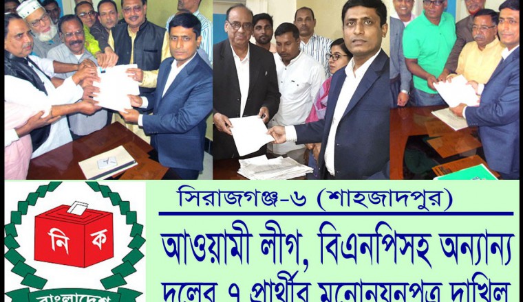 শামছুর রহমান শিশির : আসন্ন একাদশ জাতীয় সংসদ নির্বাচনকে সামনে রেখে গত দু’দিনে ব্যাপক উৎসাহ উদ্দীপনা আর উৎসবমূখর পরিবেশে সিরাজগঞ্জ-৬ (শাহজাদপুর) সংসদীয় আসনে আওয়ামী লীগ, বিএনপি, জাসদ, বাসদ, ইসলামী আন্দোলন বাংলাদেশ, জেএসডির মোট ৭ জন প্রার্থী তাদের স্ব-স্ব মনোনয়নপত্র দাখিল করেছেন। আজ বুধবার সকাল ১১ টায় বিপুল সংখ্যক দলীয় নেতাকর্মীদের সাথে নিয়ে শাহজাদপুর উপজেলা নির্বাহী অফিসার ও সহাকারী রির্টাণিং অফিসার মোঃ নাজমুল হুসেইন খাঁনের নিকট সিরাজগঞ্জ-০৬ (শাহজাদপুর) সংসদীয় আসনে আওয়ামী লীগ মনোনীত প্রার্থী হাসিবুর রহমান স্বপন (নৌকা) তার মনোনয়নপত্র দাখিল করেন। এছাড়া, এদিন বিএনপি মনোনীত প্রার্থী সাবেক সংসদ সদস্য কামরুদ্দিন এহিয়া খান মজলিশ সারোয়ার (ধানের শীষ), জাতীয় সমাজতান্ত্রিক দল-জাসদ মনোনীত প্রার্থী শফিকুজ্জামান শফি (মশাল), বাংলাদেশ সমাজতান্ত্রিক দল-বাসদ মনোনীত প্রার্থী আব্দুল আলিম ফকির (মই), ইসলামী আন্দোলন বাংলাদেশ মনোনীত প্রার্থী মিসবাহ উদ্দিন (হাতপাখা) সহ বিভিন্ন দলের ৫ জন প্রার্থী বিধি মোতাবেক দলীয় নেতাকর্মী ও সমর্থকদের সাথে নিয়ে নিজ নিজ মনোনয়নপত্র দাখিল করেছেন। সহকারি রিটার্নিং অফিসার ও উপজেলা নির্বাহী কর্মকর্তা নাজমুল হুসেইন খাঁন বিভিন্ন দলীয় প্রার্থীদের মনোনয়নপত্র গ্রহণ করেন। এ সময় উপজেলা নির্বাচন অফিসার মাহমুদা আক্তার, সহকারি কমিশনার (ভূমি) মোহাম্মদ হাসিব সরকার উপস্থিত ছিলেন। অপরদিকে, বিএনপি মনোনীত অপর প্রার্থী ড. এমএ মুহিত (ধানের শীষ) গতকাল মঙ্গলবার সহকারী রির্টাণিং অফিসারের নিকট মনোনয়ন পত্র জমা দেন এবং জেএসডি মনোনীত প্রার্থী আব্দুল হাই সরকার (তারা) সিরাজগঞ্জ জেলা রিটার্নিং অফিসারের কাছে তার মনোনয়নপত্র জমা দিয়েছেন বলে সংশ্লিষ্ট সূত্রে জানা গেছে।