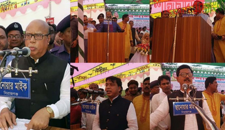 নিজস্ব প্রতিনিধি : মোহাম্মদ নাসিম বলেছেন,' নির্বাচনকে সামনে রেখে বিএনপি-জামায়াত জোট ষড়যন্ত্র করছে, করবে। কিন্তু কোনো ষড়যন্ত্রই কাজ হবে না। নির্বাচন হবে সংবিধান অনুযায়ী। নির্বাচনকালীন সরকার প্রধান থাকবেন শেখ হাসিনা। নির্বাচন পরিচালনা করবে নির্বাচন কমিশন। আগামী নির্বাচন হবে নৌকার বিজয়ের নির্বাচন। শাহজাদপুর উপজেলা আওয়ামী লীগের উদ্যোগে শুক্রবার শাহজাদপুর সরকারি কলেজ মঠে আয়োজিত জনসভায় এসব কথা বলেন তিনি। মোহাম্মদ নাসিম বলেন, শেখ হাসিনার নেতৃত্বে বাংলাদেশ উন্নয়নশীল দেশের মর্যাদা লাভ করেছে ও জঙ্গিমুক্ত বাংলাদেশ গড়ে তোলা সম্ভব হয়েছে। উন্নয়নের ধারাবাহিকতা রক্ষায় শেখ হাসিনা সরকারকে এবারও ভোট দিয়ে ক্ষমতায় আনতে হবে। শেখ হাসিনা একাদশ জাতীয় সংসদ নির্বাচনে বিজয়ী হয়ে হ্যাটট্রিক করবেন, এই আশাবাদ ব্যক্ত করে তিনি এ লক্ষে শাহজাদপুরের সর্বস্তরের নেতাকর্মীদের ঐক্যবদ্ধভাবে কাজ করার আহ্বান জানান। এরআগে আওয়ামী লীগের যুগ্মসাধারণ সম্পাদক জাহাঙ্গীর কবির নানক এমপি বলেন, বঙ্গবন্ধু শাহজাদপুরবাসীর উন্নয়নের জন্য বাঘাবাড়ীতে মিল্কভিটা স্থাপন করেন এবং সমবায়ী পদ্ধতি চালু করে কৃষক এবং খামরীদের আমূল পরিবর্তন ঘটান। তিনি আরও বলেন, স্বাধীনতা পরবর্তি সময়ে জামায়াত-শিবির চক্র এখনও সক্রীয় আছে। সুতরাং দেশের শান্তি ও শৃঙ্খলা রক্ষায় আওয়ামী লীগের প্রতিটি নেতাকর্মীদের ঐক্যবদ্ধ থাকতে হবে। এর আগে বেলা ১১টার দিকে উপজেলার বিভিন্ন স্থান থেকে আওয়ামী লীগের নেতাকর্মীরা মিছিল নিয়ে শাহজাদপুর সরকারি কলেজ মঠে আসতে শুরু করেন। বিকেল ৩ টার দিকে আগমণে শাহজাদপুর সরকারি কলেজ মাঠ কানায় কানায় পূর্ণ হয়ে ওঠে। উপজেলা আওয়ামী লীগের সভাপতি ও স্থানীয় সংসদ সদস্য হাসিবুর রহমানের সভাপতিত্বে জনসভায় কেন্দ্রীয় আওয়ামী লীগের সাংগঠনিক সম্পাদক খালিদ মাহমুদ চৌধুরী, সদস্য মেরিনা জাহান কবিতা, জেলা আওয়ামী লীগের সভাপতি ও জেলা পরিষদ চেয়ারম্যান আব্দুল লতিফ বিশ্বাস, জেলা আওয়ামী লীগের ভারপ্রাপ্ত সম্পাদক ডা. হাবিবে মিল্লাত মুন্না, সিরাজগঞ্জ-৩ আসনের সংসদ সদস্য ম ম আমজাদ হোসেন মিলন, সিরাজগঞ্জ-৪ আসনের তানভীর ইমাম, সিরাজগঞ্জ -৫ আসনের সাংসদ আব্দুল মজিদ মন্ডল, সংরক্ষিত মহিলা আসনের সেলিনা বেগম স্বপ্না, সাবেক সংসদ সদস্য চয়ন ইসলাম, মিল্কভিটার ভাইস চেয়ারম্যান, আ.লীগ নেতা শেখ মোঃ আব্দুল হামিদ লাবলু, যুবলীগ নেতা রাজীব শেখ প্রমুখ উপস্থিত ছিলেন।