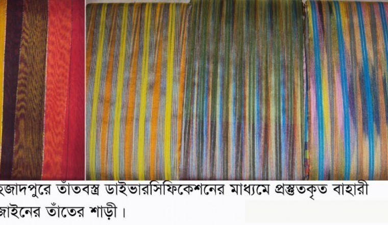 শাহজাদপুর (সিরাজগঞ্জ ) উপজেলা সংবাদদাতা: ঈদুল ফিতর উপলক্ষে দেশের তাঁতশিল্পের কেন্দ্রবিন্দু শাহজাদপুর পৌরসদরে উত্তরাঞ্চলের সর্ববৃহৎ তাঁত কাপড় বিক্রয়ের হাটে ক্রেতাদের মূল আকর্ষণ বাংলাদেশ তাঁত গবেষণা কেন্দ্রের তাঁতজাত পণ্যের ডাইভারসিফিকেশন এর মাধ্যমে উৎপাদিত রং-বাহারি শাড়ী ও ড্রেস মেটেরিয়াল। রাজধানীর নামী দামী ষ্টোর থেকে শুরু করে দেশের সকল জেলা উপজেলার শহরের অলিতে গলিতে ভারতীয় সিনথেটিক শাড়ী ও সালোয়ার কামিজে যখন বাজার সয়লাব ঠিক সেই মুহুর্তে প্রতিযোগিতায় ভারতীয় বস্ত্রের বাজার হটাতে বাংলাদেশের বাজারে তাঁত গবেষণা কেন্দ্রের সহায়তায় তাঁতজাত পণ্যের ডাইভারসিফিকেশনের মাধ্যমে এলাকার তাঁতীদের তৈরী শাড়ী, থ্রিপিস, লেহেঙ্গা ও পাঞ্জাবী দেশের ক্রেতাদের আশানুরূপ সারা জাগিয়েছে।পর্যাপ্ত উৎপাদন না থাকায় বাজারের চাহিদা পুরন করতে ব্যার্থ হচ্ছে তাঁতীরা। পলি-য়েষ্টার, পলি-প্রপাইলিং,পলি-এ্যামাইড,পলি-নোসিক,নাইলন ও এক্রেলিক বেজ্ড ম্যান মেইড ফাইবারগুলোকে ফেন্সি ইয়ার্ন হিসেবে কাজে লাগিয়ে ব্যাপক গবেষণার মাধ্যমে ফিউশন করে কৃত্রিমতন্তু উদ্ভাবিত হাজারো রকমের ইয়ার্ন ছাড়াও মেটালিক ইয়ার্ন (জড়ি) ও ফেন্সি ইয়ার্ন দ্বারা তৈরী এ শাড়ী ও ড্রেস মেটেরিয়াল হস্তশিল্পীদের হাতের বিভিন্ন অলংকরনের মাধ্যমে চাকচিক্যময় ভাবে তৈরী করা হয়েছে। তুলনামুলকভাবে তৈরী এ শাড়ী ও ড্রেস মেটেলিয়ালগুলোর মূল্যও যেমন কম তেমনি টেকসইও বটে। এ ছাড়াও এ কাপড় ধোলাই ও ইস্ত্রি করাও সম্ভব। সে কারনের ক্রেতাদের কাছে এর ব্যাপক চাহিদা ও কদর ইতিমধ্যেই সৃষ্টি হয়েছে। শাহজাদপুর কাপড়ের হাটে আগত কাপড় প্রস্তুতকারী শাহজাদপুরের খুকনী এলাকার ‘সুজন কটেজ ইন্ডাসট্রিজ’র মালিক-ধর্মদাস পাল, আশরাফ উইভিং ফ্যাক্টরী’র মালিক-হাজী আব্দুস ছাত্তার, মুকন্দগাতী-বেলকুচির রায় প্রডাক্টস’র মালিক-বৈদ্যনাথ রায়, রাজশাহীর রেশম পল্লীর কেয়া টেক্সটাইলের মালিক-জীবন বাবু জানান,‘এ ধরনের ম্যানমেইড ইয়ার্ন দ্বারা তৈরী প্রতিপিস শাড়ির সর্ব্বনিম্ন মূল্য ৩০০ থেকে ৩৫০ টাকা, জ্যাকার্ড ডিজাইনসহ ৫০০ থেকে ৭০০ টাকা এবং সর্ব্বোচ ৫ হাজার টাকা। এর সঙ্গে হস্তশিল্পীদের কারুকার্য মূল্য যোগ হয়ে এর প্রকৃত মূল্য নির্ধারণ হয়ে থাকে।’ এ ব্যাপারে ব্যক্তিগত উদ্যোগে প্রতিষ্ঠিত বাংলাদেশ তাঁত গবেষণা কেন্দ্রের পরিচালক মি. মোবারক হোসেন সরকার জানান, ‘বিগত এক দশকে ভারতে ম্যানমেইড ফেন্সি ইয়ার্ন তৈরীর ক্ষেত্রে এক বিপ্লব ঘটে গেছে। সে ক্ষেত্রে আমরা অনেক পিছিয়ে। ভারতে গবেষণার মাধ্যমে প্রতিবছর কোন না কোন নতুন ম্যান মেইড ইয়ার্ন বাজারে চালু হচ্ছে। ভারতে এ ধরনের ফাইবার বা ইয়ার্ন ম্যানমেইড ফেন্সী ইয়ার্ন হিসেবে 
