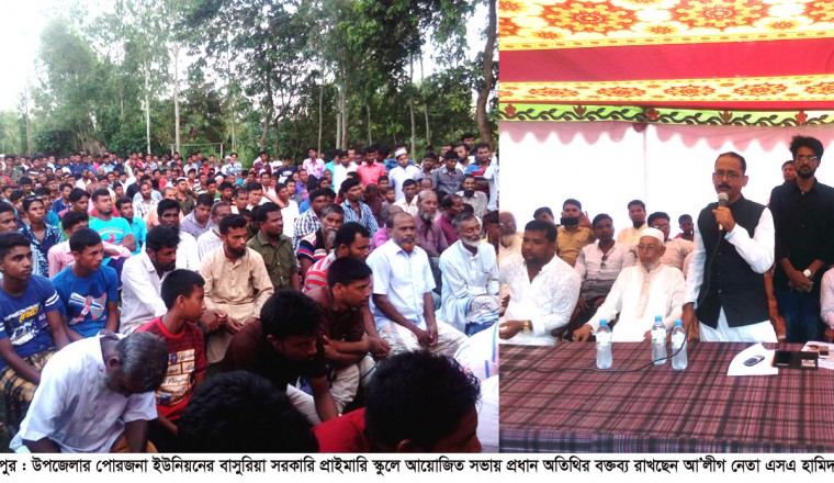 শাহজাদপুর সংবাদ ডটকম, নিজস্ব প্রতিনিধি, রোববার, ২৬ আগস্ট ২০১৮ খ্রিষ্টাব্দ : ‘প্রধানমন্ত্রী জননেত্রী শেখ হাসিনা’র সরকার দেশে উন্নয়নে কাজ করে যাচ্ছে। উন্নয়নের চলমান গতিশীলতা রক্ষা করতে হলে আবারও জননেত্রী শেখ হাসিনা’কে রাষ্ট্র ক্ষমতায় বসাতে হবে। আমরা কোন গ্রুপিং করি না। নৌকা প্রতীকের প্রশ্নে আমরা সবাই ঐক্যবদ্ধ। শাহজাদপুরের পূর্বাঞ্চলের জনমানুষের ভাগ্যোন্নয়নের জন্য যমুনা নদী তীর সংরক্ষণ প্রকল্প বাস্তবায়ন করে ভাঙ্গণ রোধ করেছেন। হাজার কোটি টাকার বেড়িবাঁধের কাজ শুরু হয়েছে। তাই শাহজাদপুর তথা দেশে চলমান উন্নয়নের ধারাবাহিকতা রক্ষা করতে হলে নৌকার বিজয় নিশ্চিত করতে হবে। আসন্ন জাতীয় সংসদ নির্বাচনে জননেত্রী শাহজাদপুরে যাকেই নৌকা প্রতীকের মনোনয়ন দেবেন, আমরা ঐক্যবদ্ধভাবে তার পক্ষেই কাজ করবো।’ আজ ( রোবাবার ) বিকেলে শাহজাদপুর উপজেলার পোরজনা ইউনিয়নের বাসুরিয়া সরকারি প্রাথমিক বিদ্যালয় মাঠে ওয়ার্ড আওয়ামী লীগ আয়োজিত প্রান্তিক পর্যায়ে সরকারের উন্নয়ন চিত্র তুলে ধরা উপলক্ষে আয়োজিত এক সভার প্রধান অতিথির বক্তব্যে আসন্ন জাতীয় সংসদ নির্বাচনে সিরাজগঞ্জ -০৬ (শাহজাদপুর ) আসনে নৌকা প্রতীকের মনোনয়ন প্রত্যাশী, মিল্কভিটা’র ভাইস চেয়ারম্যান, স্পেশাল পিপি (নারী ও শিশু), জেলা আ’লীগের অন্যতম সদস্য ও উপজেলা আ’লীগের আইন বিষয়ক সম্পাদক এ্যাড. শেখ মোঃ আব্দুল হামিদ লাবলু উপরোক্ত কথাগুলো বলেন। আবু হেনা মাস্টারের সভাপতিত্বে ও হাফিজুর রহমানের সঞ্চালনায় অনুষ্ঠিত ওই সভায় বিশেষ অতিথি হিসেবে বক্তব্য রাখেন, শাহজাদপুর উপজেলা যুবলীগের প্রচার ও প্রকাশনা বিষয়ক সম্পাদক মোঃ রাজীব শেখ, শাহজাদপুর পৌর যুবলীগের আহবায়ক, সাবেক পৌর কাউন্সিলর আবু শামীম সূর্য্য, পোরজনা ইউনিয়ন আ’লীগের সাধারণ সম্পাদক অনীল কুমার ঘোষ প্রমূখ। বিশেষ অতিথির বক্তব্যে বক্তারা বলেন, ‘ইতিপূর্বে পূর্বাঞ্চল থেকে যোগ্য এমপি প্রার্থী পাওয়া যায়নি। এ্যাড. শেখ আব্দুল হামিদ লাবলু জনপ্রতিনিধি না হয়েও এ অঞ্চলের মানুষের ভাগ্য উন্নয়নে নিঃস্বার্থভাবে কাজ করে যাচ্ছেন। তিনি এ অঞ্চলের একজন সৎ ও যোগ্য প্রার্থী। তিনি নৌকা প্রতীকে মনোনয়ন পেলে বিপুল ভোটে তাকে বিজয়ী করা হবে।’ সভাপতির সমাপনী বক্তব্যে অনুষ্ঠানের সভাপতি আবু হেনা মাস্টার বলেন, ‘পূর্বাঞ্চলের মানুষের প্রিয় মুখ, এ অঞ্চলের সন্তান আব্দুল হামিদ লাবলু আসন্ন জাতীয় সংসদ নির্বাচনে যেনো নৌকা প্রতীকে মনোনয়ন পান, সেজন্য পূর্বাঞ্চলবাসীর পক্ষ থেকে প্রধানমন্ত্রী শেখ হাসিনা’র দৃষ্টি আকর্ষণ করছি।’ সভা শেষে আওয়ামী লীগ সরকারের শাষণামলে প্রধানমন্ত্রী শেখ হাসিনা’র উন্নয়নের প্রচারপত্র বিলি করা হয়।