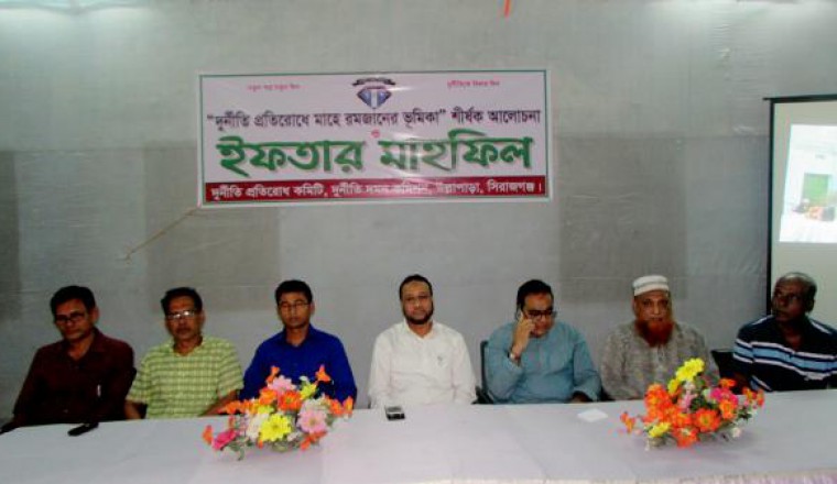 তানিম তূর্যঃ গতকাল ৩০ জুন বৃহস্পতিববার উল্লাপাড়া উপজেলা বিআরডিবি মিলনায়তনে দুর্নীতি প্রতিরোধ কমিটি, উল্লাপাড়া শাখার উদ্যেগে "দুর্নীতি প্রতিরোধে মাহে রমাজানের ভূমিকা" শীর্ষক আলোচনা ও ইফতার মাহফিল অনুষ্ঠিত হয়েছে। উক্ত অনুষ্ঠানে দুর্নীতি প্রতিরোধে মাহে রমাজানের ভূমিকা নিয়ে আলোচনায় উঠে এসে জঙ্গীবাদ, গুপ্ত হত্যা, টার্গেট কিলিং, বিভিন্ন প্রতিষ্ঠানে দুর্নীতি ও এর প্রতিকাররে উপায় এবং প্রশ্ন উত্তর পর্ব। উক্ত অনুষ্ঠিত প্রধান অতিথি হিসাবে উপস্থিত ছিলেন সিরাজগঞ্জ জেলার সন্মানিত্ব জেলা প্রশাসক জনাব বিল্লাল হোসেন, বিশেষ অতিথি হিসাবে উপস্থিত ছিলেন উল্লাপাড়া উপজেলা চেয়ারম্যান জনাব মারুফ-বিন-হাবিব, উপজেলা নির্বাহী কর্মকর্তা জনাব সন্দ্বীপ কুমার সরকার, উল্লাপাড়া পৌরসভা মেয়র জনাব এস.এম নজরুল ইসলাম, সহকারী কমিশনার(ভূমি), জনাব মোঃ আকরাম আলী, উল্লাপাড়া দুর্নীতি প্রতিরোধ কমিটির সভাপতি জনাব রেজাউন করিম পারভেজ ও অন্যন্য সদস্য, সাংবাদিক,আলেমসমাজ, মসজিদের ইমাম বিভিন্ন স্কুল কলেজ ও মাদ্রাসার শিক্ষক ও শিক্ষার্থী।
