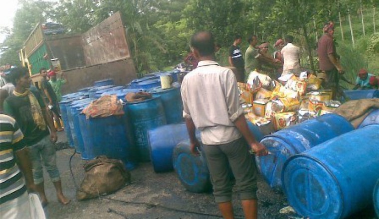 উল্লাপাড়া প্রতিনিধিঃ আজ দুপুরে বগুড়া-নগরবাড়ি মহাসড়কে উল্লাপাড়া উপজেলার চড়িয়া শিকার দক্ষিণপাড়া গ্রামের পাশে প্রাণ কোম্পানির সরিষার তেল বহনকারী একটি ট্রাক নিয়ন্ত্রণ হারিয়ে রাস্তার পাশের খাদে পড়ে গেলে প্রায় ৫ মেট্রিক টন তেল নষ্ট হয়ে যায়। উল্লাপাড়ার সদর ইউপি চেয়ারম্যান আকমল হোসেন সরবরাহকারী হিসেবে টিন ও ড্রামে করে প্রায় ১০ মেট্রিক টন তেল উল্লাপাড়া থেকে ঢাকা পাঠাচ্ছিলেন। ক্ষতি হওয়া তেলের মূল্য ৫ লাখ টাকা বলে দাবি করেছেন আকমল হোসেন। দুর্ঘটনার পর উল্লাপাড়ার হাটিকুমরুল হাইওয়ে থানা পুলিশ দুর্ঘটনা কবলিত ট্রাকটি (ঢাকা ন-৪৪২৮) রাস্তা থেকে সরানোর ব্যবস্থা নেন এবং বেঁচে যাওয়া তেল উদ্ধারের ব্যবস্থা করেন।