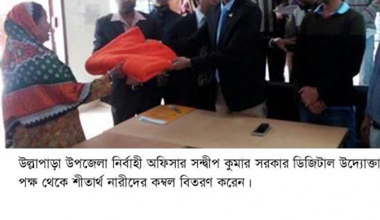 রোববার উল্লাপাড়া পৌরসভা ও উপজেলার সদর ইউনিয়ন ডিজিটাল সেন্টারের উদ্যোক্তাদের সংগঠন উপজেলা উদ্যোক্তা ফোরামের উদ্যোগে দুঃস্থদের মধ্যে কম্বল বিতরণ করা হয়। উপজেলা পরিষদ হলরুমে সংগঠনের সভাপতি মাসুদ বিন রশিদের সভাপতিত্বে কম্বল বিতরণ অনুষ্ঠানে বক্তব্য রাখেন উল্লাপাড়া উপজেলা নির্বাহী অফিসার সন্দ্বীপ কুমার সরকার, সিনিয়র উপজেলা মৎস্য কর্মকর্তা আবুল কালাম আজাদ, উপজেলা প্রকল্প বাস্তবায়ন কর্মকর্তা মাহবুবুর রহমান ভুইয়া, সহকারী প্রোগ্রামার মোস্তাফিজুর রহমান, সাংবাদিক গোলাম মোস্তফা, উদ্যোক্তা হাফিজুর রহমান হাফিজ, পলাশ কুমার সরকার, আব্দুল মান্নান প্রমুখ। উপজেলা উদ্যোক্তা ফোরামের নিজস্ব অর্থায়নে এ কম্বল বিতরণ করা হয় বলে সংগঠনের সভাপতি মাসুদ বিন রশিদ জানান।