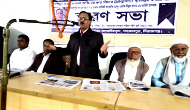 বিশেষ প্রতিবেদক : গত ৪ ফেব্রুয়ারি ঢাকা থেকে প্রকাশিত দৈনিক সমকাল পত্রিকার ব্যাক পেইজে ‘শিমুল হত্যার ২ বছর পূর্তিতে স্মরণসভা; আদালতের নির্দেশিত সময়েই বিচার শেষ করার দাবি’ শিরোনামে প্রকাশিত সংবাদে শাহজাদপুরের একজন সচিবকে জড়িয়ে দৈনিক সমকালের অতিরিক্ত বার্তা সম্পাদক তপন দাশের উদ্ধৃতি দিয়ে প্রকাশিত সংবাদে শাহজাদপুরের বিভিন্ন মহলে ক্ষুব্ধ প্রতিক্রিয়ার সৃষ্টি হয়েছে। শাহজাদপুরের রাজনৈতিক, অরাজনৈতিক, সুধীমহলসহ সাধারণ জনগণের দেয়া ভাষ্যমতে, ‘দৈনিক সমকালের অতিরিক্ত বার্তা সম্পাদক তপন দাশের উদ্ধৃতি দিয়ে সমকালে প্রকাশিত সংবাদে শাহজাদপুরের একজন সচিবকে যেভাবে কটাক্ষ করা হয়েছে তা মোটেও শোভনীয় হয়নি। শাহজাদপুরের একজনই পূর্ণ পদমর্যাদা সম্পন্ন সচিব অত্যন্ত সুনামের সাথে গণপ্রজাতন্ত্রী বাংলাদেশ সরকারের আইন, বিচার ও সংসদ বিষয়ক মন্ত্রনালয়ের সচিব পদে দীর্ঘদিন ধরে কর্মরত রয়েছেন যিনি হলেন আবু সালেহ শেখ মোঃ জহিরুল হক।’ শাহজাদপুরের অসংখ্য রাজনৈতিক, অরাজনৈতিক, সুধীমহলসহ সাধারণ জনগণ আক্ষেপ প্রকাশ করে আরও বলেছেন, ‘শাহজাদপুর তথা দেশের গর্বিত সন্তান আইন, বিচার ও সংসদ বিষয়ক মন্ত্রনালয়ের সচিব আবু সালেহ শেখ মোঃ জহিরুল হক একজন ন্যায়বান ও পরোপকারী ব্যাক্তি। যিনি শাহজাদপুরে রবীন্দ্র বিশ্ববিদ্যালয়,বাংলাদেশ, চৌকি আদালত ও জেলা যুগ্ম-দায়রা জজ আদালত, ১০ সয্যাবিশিষ্ট হাসপাতাল স্থাপন, শাহজাদপুর সরকারি কলেজকে বিশ্ববিদ্যালয় কলেজে রূপান্তর ও সেখানে ১২টি বিষয়ে অনার্স কোর্স চালু, ঐতিহ্যবাহী শাহজাদপুর পাইলট উচ্চ বিদ্যালয়কে জাতীয়করণ, যমুনার দুর্গম পল্লীর দুগালী আদর্শ উচ্চ বিদ্যালয়কে কলেজে রূপান্তর, কারিগরী শিক্ষাব্যবস্থা চালু, বহুতল ভবন নির্মাণ, পোরজনা ও গালা, রূপবাটিসহ উপজেলার বিভিন্ন ইউনিয়নের গ্রামীণ যোগাযোগ ব্যবস্থার উন্নয়নে সাব-মার্সিবল সড়ক নির্মাণ, শাহজাদপুর উপজেলা আইনজীবী সমিতির কার্যালয় আধুনিকায়ন ও লাইব্রেরি স্থাপন, জগৎ বরেণ্য অলী হযরত মখদুম শাহদৌলা শহিদ ইয়ামেনি (রহঃ) এর মখদুমিয়া জামে মসজিদ ও মাজার সংস্কার, শাহজাদপুর পৌরসদরসহ ১৩ ইউনিয়নের ৫’শতাধিক যুবককে বিনা পয়সায় সরকারি চাকুরী প্রদানপূর্বক যুবসমাজের কর্মসংস্থান সৃষ্টিসহ শাহজাদপুরের বহুমূখী উন্নয়নে বিশেষ ভূমিকা পালন করে চলেছেন। গণপ্রজাতন্ত্রী বাংলাদেশ সরকারের আইন, বিচার ও সংসদ বিষয়ক মন্ত্রনালয়ের সচিব আবু সালেহ শেখ মোঃ জহিরুল হক একজন অরাজনৈতিক ব্যাক্তিত্ব ও সরকারের শীর্ষ পর্যায়ে কর্মরত সৎ, আদর্শবান ও সর্বাপরি শাহজাদপুরবাসীর নিকট একজন ভালো মানুষ হিসেবে পরিচিত। শুধু তাই নয়, সাংবাদিক শিমুল হত্যা ঘটনার সূত্রপাতে শাহজাদপুর সরকারি কলেজ ছাত্রলীগ নেতা য