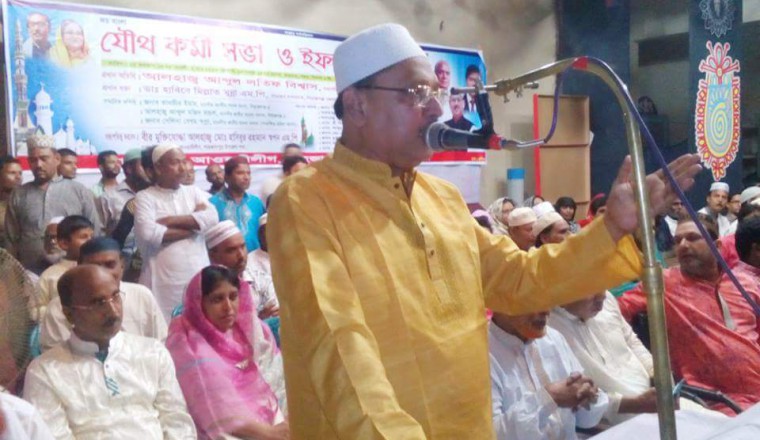 শাহজাদপুর প্রতিনিধি : গতকাল শুক্রবার বিকেলে শাহজাদপুর রবীন্দ্র কাছারিবাড়ি মিলনায়তনে শাহজাদপুর উপজেলা আওয়ামী লীগের উদ্যোগে এক বিশাল যৌথ কর্মীসভা ও ইফতার মাহফিল অনুষ্ঠিত হয়েছে। স্থানীয় সংসদ সদস্য আলহাজ্ব হাসিবুর রহমান স্বপনের সভাপতিত্বে অনুষ্ঠিত সভায় বক্তব্য রাখেন, শাহজাদপুর উপজেলা পরিষদের চেয়ারম্যান প্রফেসর আজাদ রহমান, ভাইস চেয়ারম্যান মুস্তাক আহমেদ, দায়িত্বপ্রাপ্ত পৌরমেয়র নাসির উদ্দিন, আওয়ামী লীগ নেতা গোলাম মওলা আযম, আব্দুল হাই, নিয়ামুল ওয়াকিল খান আওরঙ্গ, আমিনুল ইসলাম ভুলু, রফিকুল ইসলাম বাবলা, ইউপি চেয়ারম্যান সাইফুল ইসলাম, শামসুল আলম, তরু লোদী, লুৎফর রহমান, ফারুক সরকার, আমিরুল ইসলাম শাহু, আশিকুল হক দিনার, মাহবুবে ওয়াহিদ শেখ কাজল, ইসলাম শেখ, জহরলাল শেখ, মাজেদ আলী, গোলাম মর্তুজা প্রমূখ। সভাপতির বক্তব্যে স্থানীয় এমপি আলহাজ্ব হাসিবুর রহমান স্বপন বলেন,‘দল এখন অনেক শক্তিশালী। দলীয় সকল কার্যক্রম সুশৃংখলভাবে পরিচালনা করে আসছি। প্রধানমন্ত্রী আমাদের দাবির মুখে রবীন্দ্র বিশ্ববিদ্যালয় শাহজাদপুরে প্রতিষ্ঠা করেছেন। তাই আগামী নির্বাচনে এ আসনটি নৌকার বিজয় ঘটিয়ে প্রধানমন্ত্রীকে উপহার দেয়াই আমাদের মূল লক্ষ।’ ওই সভায় অন্যান্য বক্তারা বলেন,‘শাহজাদপুর আওয়ামী রাজনীতি টিকিয়ে রাখতে হলে হাসিবুর রহমান স্বপনের বিকল্প নাই। তাই আগামী নির্বাচনে এ আসনে প্রধানমন্ত্রী যাকেই মনোনয়ন দেবেন, আমরা ঐক্যবদ্ধভাবে কাজ করে নৌকার বিজয় আবারও আনবো।’