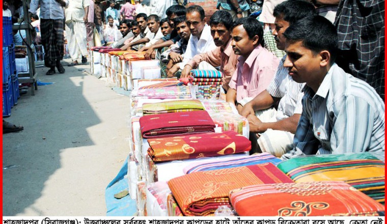 শামছুর রহমান শিশির : দেশের ঐতিহ্যবাহী ও সর্ববৃহৎ কুঁটির শিল্প হলো তাঁতশিল্প। দেশের তাঁতশিল্পে কেন্দ্র শাহজাদপুর ও বিন্দু সিরাজগঞ্জসহ তাঁতসমৃদ্ধ এলাকা হিসেবে পরিচিত সিরাজগঞ্জ জেলার বেলকুচি, চৌহালী, এনায়েতপুর, উল্লাপাড়া ও পাবনা জেলার জালালপুর, আতাইকুলা, বেড়া, সাঁথিয়াসহ বৃহত্তর পাবনা জেলার তাঁতীদের মাঝে বর্তমানে চরম হতাশা বিরাজ করছে। একদিকে তাঁত শিল্পের উৎপাদন কাজের প্রয়োজনীয় কাচামাল সূতা, রং এবং রাসায়নিক দ্রব্যের অস্বাভাবিক মুল্য বৃদ্ধি এবং সেই সাথে দীর্ঘদিন যাবৎ তাঁতের কাপড়ের বাজারে ক্রয় বিক্রয়ে মন্দাভাব বিরাজ করায় এই জেলার তাঁত শিল্পের অস্তিত্ব বর্তমানে হুমকির মুখে। ইতিমধ্যেই এই এলাকার প্রায় অর্ধেক তাঁত বন্ধ হয়ে গেছে। ফলে তাঁত শিল্পের সাথে জড়িত হাজার হাজার তাঁত শ্রমিক এবং মালিক বর্তমানে বেকার হয়ে মানবেতর জীবন যাপন করছে। এই অবস্থা চলতে থাকলে অচিরেই চালু তাঁতগুলোও বন্ধ হয়ে এক ভয়াবহ অবস্থা সৃষ্টি হওয়ার আশংকা রয়েছে। পাবনা সিরাজগঞ্জের তাঁত সমৃদ্ধ অঞ্চলে ২০০৩ সালের তাঁত বোর্ডের জরিপ অনুুযায়ী হস্তচালিত তাঁতের সংখ্যা ২ লাখ ৬০ হাজার এবং বিদ্যুৎ চালিত পাওয়ারলুমের সংখ্যা প্রায় ৫৫ হাজার। সিরাজগঞ্জ জেলায় এ পর্যন্ত নির্ভরযোগ্য কোন তাঁত শুমারী না হওয়ায় নির্ভূলভাবে প্রকৃত তাঁত সংখ্যা না জানা গেলেও মিডিয়া এবং বিভিন্ন সূত্র থেকে প্রাপ্ত তথ্য মোতাবেক সিরাজগঞ্জ জেলায় পাওয়ারলুম, চিত্তরঞ্জন (হ্যান্ডলুম) এবং পীটলুম মিলে প্রায় দেড় লক্ষ তাঁত রয়েছে। এই তাঁতের সাথে এখানকার উৎপাদিত বিভিন্ন বাহারি ডিজাইনে শাড়ী, লুঙ্গী, ধুতি, থ্রি-পিচ এবং গামছা অনেক উন্নত মানের এবং সারা দেশে বিপুল চাহিদা রয়েছে। এখানকার তাঁতের শাড়ী ও লুঙ্গী ভারতের বাজারে বেসরকারী উদ্যোগে রপ্তানী হয় বলে তাঁতীরা জানান। এছাড়াও মধ্যপ্রাচ্যের বিভিন্ন দেশে চাহিদা রয়েছে এবং সে মোতাবেক রপ্তানী হয়ে থাকে। পৃথিবীর বিভিন্ন দেশে আমাদের দেশের তাঁতজাত সামগ্রী শুল্কমুক্ত হিসেবে বিদেশে রপ্তানী পন্যের তালিকায় অন্তর্ভূক্ত হতে পারে বলে তাঁত ফ্যাক্টরীর মালিকরা দাবী করেন। দক্ষিণ এশিয়ার অনেক দেশের সাথে এই সুবিধা থাকলেও এক্ষেত্রে সরকারী পৃষ্ঠপোষকতা নাই। প্রত্যক্ষ এবং পরোক্ষ ভাবে এই এলাকার আর্থসামাজিক অবস্থা বিশেষভাবে তাঁত শিল্পের উপর নির্ভরশীল উত্তরবঙ্গের বৃহৎ একটি অঞ্চল। তাঁতের কাপড়ের বাজার ভাল থাকলে সাধারণ মানুষের আর্থিক অবস্থা ভাল থাকে, আর এই বাজারে মন্দাভাব দেখা দিলে মানুষের অর্থনৈতিক অবস্থাও মন্দাভাব দেখা দেয়। বর্তমানে যেমনটি হয়েছে। এই অঞ্চলের তাঁতীদের উৎপাদিত কাপড় বেচাকেনার প্রধান হাটগুলো হচ্ছে শাহজাদপুর, বেলকুচির সোহাগপুর, এনায়