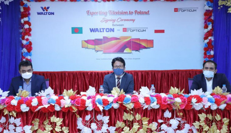 দেশের রপ্তানি খাতে একের পর এক চমক সৃষ্টি করে চলেছে ইলেকট্রনিক্স জায়ান্ট ওয়ালটন। বিশ্বের অন্যান্য দেশের পাশাপাশি ইউরোপের দেশগুলোতে বাড়ছে ওয়ালটন পণ্যের রপ্তানি। এরই ধারাবাহিকতায় ইউরোপের পঞ্চম জনবহুল দেশ পোলান্ডে টেলিভিশন রপ্তানি শুরু করলো ওয়ালটন। দেশটির জনপ্রিয় ব্র্যান্ড ‘অপটিকাম’-এর মাধ্যমে ইতোমধ্যেই পোলান্ডে টিভির প্রথম শিপমেন্ট পাঠিয়েছে ওয়ালটন। এর ফলে ইউরোপে ‘মেড ইন বাংলাদেশ’ ট্যাগযুক্ত পণ্যের বাজার সম্প্রসারণে আরও এক ধাপ এগিয়ে গেলো বাংলাদেশ। জানা গেছে, ওয়ালটনের ইউরোপ জয়ের লক্ষ্যে শুরু থেকেই ছিলো ব্যাপক পরিকল্পনা। দেশের বাজারে শীর্ষস্থান অর্জনের পর ওয়ালটনের পরিকল্পনা ছিলো বিশ্ববাজারে শক্ত অবস্থান তৈরি করা। পোল্যান্ডে টেলিভিশন রপ্তানির মধ্য দিয়ে ইউরোপের বাজারে বাংলাদেশে তৈরি ইলেকট্রনিক্স পণ্য রপ্তানি কার্যক্রম আরো গতি পেল। সম্প্রতি পোলান্ডের ব্র্যান্ড ‘অপটিকাম’-এর সঙ্গে এ বিষয়ে ওয়ালটনের একটি চুক্তি হয়। রাজধানীর ওয়ালটন করপোরেট অফিসে আয়োজিত চুক্তি স্বাক্ষর অনুষ্ঠানে উপস্থিত ছিলেন ওয়ালটনের ইন্টারন্যাশনাল বিজনেস ইউনিটের প্রেসিডেন্ট এডওয়ার্ড কিম, ওয়ালটন টেলিভিশন বিভাগের প্রধান নির্বাহী কর্মকর্তা প্রকৌশলী মোস্তফা নাহিদ হোসেন এবং ওয়ালটনের ইউরোপিয়ান অঞ্চলের বিজনেস হেড তাওসীফ আল মাহমুদ। ভিডিও কনফারেন্সের মাধ্যমে চুক্তি স্বাক্ষর অনুষ্ঠানে পোলান্ড থেকে যোগ দেন ‘অপটিকাম’-এর সিইও রিচার্ড গ্র্যাবসহ প্রতিষ্ঠানটির উর্ধ্বতন কর্মকর্তারা। ওয়ালটনের ইউরোপিয়ান বিজনেস হেড তাওসীফ আল মাহমুদ বলেন, মধ্য ইউরোপের কেন্দ্রে অবস্থিত পোল্যান্ড অত্যন্ত গুরুত্বপূর্ণ একটি বাজার। ৩৮ মিলিয়ন জনসংখ্যার দেশ পোল্যান্ড ‘নতুন’ ইউরোপীয় ইউনিয়ন (ইইউ) দেশগুলোর মধ্যে একক বৃহত্তম বাজার। এই রপ্তানির সুবাদে শুধু পোল্যান্ডই নয়, ইউরোপের অন্যান্য দেশেও ওয়ালটনের পণ্য ব্যাপকভাবে ডিস্ট্রিবিউশন করা সহজ হবে। সেপ্টেম্বর মাসের শেষ নাগাদ পোল্যান্ডের বাজারে ওয়ালটনের তৈরি টেলিভিশন পাওয়া যাবে। এছাড়াও ‘অপটিকাম’ পোল্যান্ডে ওয়ালটন পণ্য অনলাইনে বিক্রয় কার্যক্রমেও পার্টনার হিসাবে ভবিষ্যতে কাজ করার আশা প্রকাশ করেছে। ওয়ালটন টেলিভিশন বিভাগের প্রধান নির্বাহী কর্মকর্তা প্রকৌশলী মোস্তফা নাহিদ হোসেন বলেন, পারস্পারিক ব্যবসা সম্প্রসারণের অংশ হিসাবে ‘অপটিকাম’ এর সঙ্গে চুক্তি স্বাক্ষর করেছে ওয়ালটন। এছাড়াও পরিকল্পনা অনুযায়ী আগামী বছরের মধ্যে ইউরোপের বাজারে ১ লাখ ইউনিট টেলিভিশন রপ্তানির পরিকল্পনা গ্রহণ করেছে প্রতিষ্ঠানটি। ওয়ালটন টেলিভিশনের গবেষণা ও উন্নয়ণ (জ্উ), বিভাগ গ্রাহকের আস্থা অর্জনে পণ্যের সর্বোচ্চ ম