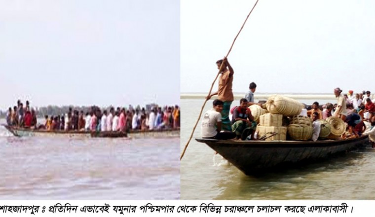 করোনার ক্রান্তিকালে স্বাস্থ্যবিধি না মেনে শাহজাদপুর উপজেলার যমুনা নদীতে ত্রুটিপূর্ণ নৌযানে ঝুঁকি নিয়ে চলাচল করছে যমুনার চরাঞ্চলের মানুষ। করোনা ভাইরাসের ক্রান্তিকালে উপজেলার যমুনা নদী তীরবর্তী বেশ কয়েকটি খেয়াঘাট থেকে দুর্গম চরাঞ্চলে শ্যালো ইঞ্জিনচালিত ফিটনেস বিহীন নৌকাযোগে সামাজিক দুরত্ব না মেনে ঠাঁসাঠাসি করে নিত্যদিন হাজার হাজার এলাকাবাসী জীবনের ঝুঁকি নিয়ে চলাচল করছে। এতে, একদিকে যেমন সম্প্রতি যমুনা ও পদ্মা নদীতে নৌকাডুবিতে ব্যাপক প্রাণহানীর মতো ট্রাজেডি ঘটার আশংকা থেকেই যাচ্ছে; অপরদিকে, করোনা ভাইরাসের ক্রান্তিকালে এভাবে ঠাঁসাঠাসি করে যাত্রী পরিবহন করায় স্বাস্থ্য ঝূঁকির আশংকাও প্রকাশ করেছে বিজ্ঞমহল । দেখার কেউ নেই। জানা গেছে, উপজেলার কৈজুরী, জামিরতা, কাশিপুর, বেনুটিয়া, জগতলা ও গালা ইউনিয়নের খেয়াঘাটসহ যমুনা নদী তীরবর্তী বিভিন্ন পয়েন্ট থেকে ফিটনেস বিহীন শ্যালো ইঞ্জিনচালিত অসংখ্য নৌকাযোগে বানতিয়ার, ছোট চামতারা, বড় চামতারা, হাতকোড়া, মুনপুর, রতনদিয়ার, বাঙালা, বৃ-দাশুরিয়া, দাশুরিয়া, ক্ষিদ্র-দাশুরিয়া, শ্রীপুর, ঠুটিয়া, মনাকষা, স্থল, ধীতপুর, মৌকুড়ি, নোহাটা, শোনতোষা, বসন্তপুর, দিঘলকান্দি, ঘাটাবাড়ী, বাঐখোলা, জালালপুর, রূপসী, ঘোরজান, কুরশী, সোনাতনীসহ যমুনার দুর্গম চরাঞ্চলের মানুষ প্রতিনিয়ত ঝুঁকি নিয়ে চলাচল করছে। স্থানীয় অসাধু মাঝি ও নৌ-মালিকেরা অতিরিক্ত ভাড়া আদায়ের লোভে ধারণক্ষমতার চেয়ে কয়েকগুণ বেশী যাত্রী ও মালামাল নিয়ে ভরা যমুনার বুক দিয়ে চলাচল করছে। এসব ফিটনেস বিহীন নৌযানে অতিরিক্ত যাত্রী মালামাল বহন করায় একদিকে যেমন জানমালের ক্ষয়ক্ষতির আশংকরা রয়েছে, তেমনি সামাজিক দুরত্ব না মানায় স্বাস্থ্য ঝুঁকিও রয়েছে। এ বিষয়ে শাহজাদপুর উপজেলা নির্বাহী অফিসার শাহ মোঃ শামসুজ্জোহান জানান, ‘এ বিষয়ে প্রয়োজনীয় পদক্ষেপ নেওয়া হবে।’