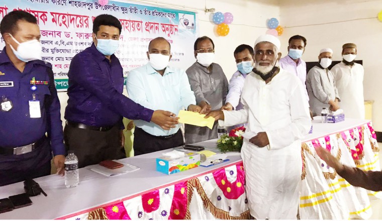 কোভিট-১৯ মহামারির কারণে দেশের তাঁতশিল্পর কেন্দ্রবিন্দু সিরাজগঞ্জের শাহজাদপুরে করোনায় ক্ষতিগ্রস্থ ক্ষুদ্র ১’শ তাঁতি ও শ্রমিককে অর্থসহায়তা প্রদান করেছেন সিরাজগঞ্জ জেলা প্রশাসক ড. ফারুক আহাম্মদ। বুধবার বিকেলে উপজেলা পরিষদের শহিদ স্মৃতি সম্মেলন কক্ষে এ উপলক্ষে আলোচনা সভা অনুষ্ঠিত হয়েছে। শাহজাদপুর উপজেলা নির্বাহী অফিসার শাহ মোঃ শামসুজ্জোহার সভাপতিত্বে অনুষ্ঠিত ওই সভায় প্রধান অতিথি হিসেবে উপস্থিত থেকে সিরাজগঞ্জ জেলা প্রশাসক ড. ফারুক আহাম্মদ ক্ষতিগ্রস্থ তাঁতি ও শ্রমিকদের হাতে জনপ্রতি ২ হাজার ৫’শ টাকা করে অর্থসহায়তা প্রদান করেন। এতে বিশেষ অতিথি হিসেবে বক্তব্য রাখেন, উপজেলা পরিষদ চেয়ারম্যান প্রফেসর আজাদ রহমান, ভাইস চেয়ারম্যান লিয়াকত আলী, উপজেলা কৃষি কর্মকর্তা আব্দুস সালাম, পৌরসভার ভারপ্রাপ্ত মেয়র আব্দুর রাজ্জাক, থানার অফিসার ইনচার্জ আতাউর রহমান প্রমূখ।