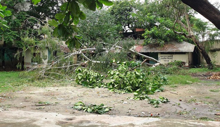 রাতে বয়ে যাওয়া কালবৈশাখী ঝড় আঘাত হেনেছে বাংলাদেশ চলচ্চিত্র উন্নয়ন করপোরেশনে (বিএফডিসি)। ঝড়ো হাওয়ায় উপড়ে পড়েছে বেশ কিছু গাছ, হেলে পড়েছে আরও কিছু। এছাড়াও গাছের ডাল আধাপাকা বিল্ডিংয়ের টিনের চালেও পড়েছে। শুধু গাছই নয়, এফডিসির বেশকিছু অস্থায়ী বোর্ড ও সাজসজ্জার ক্ষতি হয়েছে। বিশেষ করে মূল ফটকের সামনে রাখা প্লাইউডের বোর্ডগুলো ভেঙে পড়েছে। তাই এগুলো ক্ষতিগ্রস্ত হওয়ার আশঙ্কা করছে সংশ্লিষ্টরা। বর্তমানে ঈদের ছুটি থাকায় ঝড়ে ক্ষয়ক্ষতির স্পষ্ট ধারণা এখনই দেওয়া সম্ভব নয় বলে  জানিয়েছেন বিএফডিসির ভারপ্রাপ্ত ব্যবস্থাপনা পরিচালক ও যুগ্ম সচিব নুজহাত ইয়াসমিন। তিনি বলেন, ‘সকালে নিরাপত্তার বিষয়টি আমাকে অবহিত করেন। যতদূর জানি, বেশ কিছু বড় গাছ ঝড়ে উপড়ে পড়েছে। তবে সংখ্যাটা এখন বলা মুশকিল। আর কিছু গাছ হেলে গেছে। এই ঝুঁকিপূর্ণ গাছগুলো দ্রুত সরানোর নির্দেশ দিয়েছি। যেগুলো পড়ে গেছে, সেগুলো আপাতত সরানো হচ্ছে না। কারণ আমাদের বেশ কিছু বিল্ডিং এমনিতেই ভাঙা হবে। এছাড়াও এফডিসিতে বেশ কিছু টিনশেডের চালা আছে। সেগুলো ভালো করে চেক করতে বলেছি।’ তিনি আরও জানান, লকডাউন শেষ হলে, ক্ষয়ক্ষতির হিসাবটা বের করা হবে।’ এদিকে, এফডিসির বিভিন্ন সমিতির অফিসগুলোর ছাদে টিন ব্যবহার করা। ঝড়ে সেগুলো ক্ষতিগ্রস্ত হয়েছে কিনা- জানতে পরিচালক সমিতির সভাপতি মুশফিকুর রহমান গুলজার ও শিল্পী সমিতির সাধারণ সম্পাদক জায়েদ খানের সঙ্গে যোগাযোগ করা হলে তারা বিষয়টি পুরোপুরি জানেন না বলে জানান।