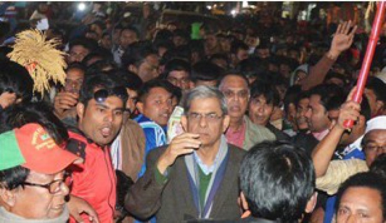 এর আগে মির্জা ফখরুল শহরের কাঠেরপুলে এবং এস. এস. রোডের জামান কমপ্লেক্সের সামনে থেকে শুরু করে চামড়াপট্টি মোড় পর্যন্ত পায়ে হেটে গণসংযোগ করেন।