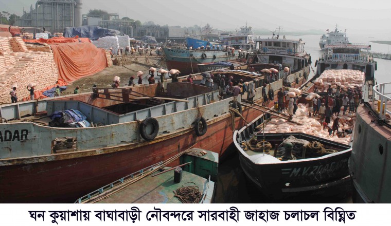 গত কয়েকদিনে ঘন কুয়াশা ও শীতের প্রকপে শাহজাদপুরের বাঘাবাড়ী - চট্টগ্রাম নৌবন্দর রুটে ইউরিয়া সার বাহী কার্গো জাহাজ চলাচলে বিঘ্ন সৃষ্টি হচ্ছে। এতে বাঘাবাড়ী নৌবন্দর থেকে উত্তরাঞ্চলের ১৬ জেলার ১৪টি বাফার গুদামে আপদকালীন সার মজুদের কাজ নির্দিষ্ট সময়ের মধ্যে শেষ না হওয়ার আশংকা দেখা দিয়েছে। সংশ্লিষ্ট কর্তৃপক্ষ জানায়, সরকার চলতি বছরে উত্তরাঞ্চলে আসন্ন সেচ মৌসুমে কৃষকের চাহিদা পুরনে ৬৪ লাখ মেট্রিকটন ইউরিয়া সার মজুদের সিদ্ধান্ত নেয়। এ সিদ্ধান্ত অনুযায়ী গত অক্টোবর মাস থেকে কার্গো জাহাজ যোগে ইউরিয়া সার চট্টগ্রাম থেকে বাঘাবাড়ী নৌবন্দরে নেওয়ার কাজ শুরু করা হয়এবং ট্রাক যোগে বাঘাবাড়ী নৌবন্দর থেকে উত্তরাঞ্চলের ১৬ জেলার ১৪টি বাফার গুদামে সরবরাহ করা হয়।এ কাজ আগামী মার্চ পর্যন্ত চলবে। অথচ গত কয়েকদিনে ঘন কুয়াশা ও শীতের প্রকপে সারবাহী কার্গো জাহাজ সন্ধ্যার পর থেকে পরদিন দুপুর পর্যন্ত চলাচল করতে পারছেনা। দুর্ঘটনা এড়াতে এসব জাহাজ পাটুরিয়া এলাকায় নোঙর করে রয়েছে। ফলে এ অবস্থার সৃষ্টি হয়েছে। এ বছর ৫টি ঠিকাদারী প্রতিষ্ঠান এ সার পরিবহনের কাজ পেয়েছে। কোম্পানীগুলো হলো প্রটন ট্রেডার্স, নবাব ট্রেডার্স, বাল্ক ট্রেডার্স, গ্রাম সিকো ও র্যাক্স মটরস। র্যাক্স মটরস এর বাঘাবাড়ী ইনচার্জ জাহিদ হোসেন, লেবার সরদার আক্কাছ আলী ও বাংলাদেশ নৌযান শ্রমিক ফেডারেশনের সাধারণ সম্পাদক জিন্নাত আলী জানান, ঘন কুয়াশার কারণে জাহাজ চলাচলে বিঘœ সৃষ্টি হচ্ছে তাই সঠিক সময়ে উত্তরাঞ্চলের ১৬ জেলায় আপদকালীন সার মজুদের কাজ অনিশ্চিত হয়ে পড়েছে। এতে উত্তরাঞ্চলের ১৬ জেলায় আসন্ন সেচ মৌসুমে সার সংকট সৃষ্টির আশংকা দেখা দিতে পারে বলে জানিয়েছেন। এ ব্যাপারে নৌপথে ব্যাপক নিরাপত্তা বয়াবাতি স্থাপন, কোস্টগার্ড ও নৌ পুলিশের টহল জোরদারের দাবী জানিয়েছেন।