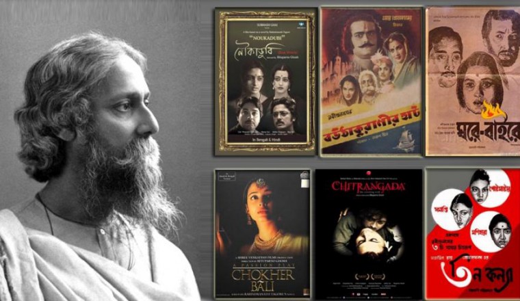 বিশ্বকবি রবীন্দ্রনাথ ঠাকুরের জন্মের ৩৪ বছর পর চলচ্চিত্রের উদ্ভাবন হয়। এরপর গীতাঞ্জলি কাব্যগ্রন্থের জন্য রবীন্দ্রনাথের নোবেল বিজয়ে আন্তর্জাতিকভাবে সবার দৃষ্টি কাড়ে বাংলা সাহিত্য। তার সৃষ্টি নিয়ে নাটক, সিনেমা তৈরি করা হয়েছে অনেক। যার অধিকাংশই বিখ্যাত। মিলন: বিখ্যাত পরিচালক নিতিন বোষ ১৯৪৫-৪৬ সালে কবিগুরু রবীন্দ্রনাথ ঠাকুরের ‘নৌকা ডুবি’ উপন্যাসের কাহিনী অবলম্বনে মিলন সিনেমাটি নির্মাণ করেন। সিনেমাটিতে অভিনেতা হিসেবে ছিলেন দিলীপ কুমার। আর এটিই ছিল দিলীপ কুমারের প্রথম সার্থক সিনেমা। কাবুলিওয়ালা: কবির চমৎকার সৃষ্টি ‘কাবুলিওয়ালা’ গল্পের উপর ভিত্তি করে বাংলাদেশ ভারত দুই দেশেই ‘কাবুলিওয়ালা’ নামেই সিনেমা নির্মিত হয়েছে। ১৯৬১ সালে বিমল রায় কাবুলিওয়ালা সিনেমা তৈরি করেন। সিনেমাটি খুবই বিখ্যাত হয়। এতে কাবুলিওয়ালার ছোট বাচ্চাকে স্মরণ করতে দেখা গেছে। এতে অভিনয় করেছিলেন বলরাজ সহানী। আমাদের দেশে ২০০৬ সালে কাজী হায়াৎ নির্মিত সিনেমায় চমৎকার অভিনয় করেছিলেন আমার প্রিয় নায়ক প্রয়াত মান্না। উপহার: রবীন্দ্রনাথের ছোট গল্প ‘সমাপ্তি’ এর উপর ভিত্তি করে রচিত হয় ‘উপহার’ নামক সিনেমাটি। ১৯৭১ সালে সুধেন্দু’র নির্দেশনায় এটি নির্মিত হয়েছিল। প্রধান অভিনেত্রী ছিলেন জয়া বচ্চন। রবীন্দ্রনাথের এই কাজের মাঝে সৌন্দর্য ও সম্পর্কের গভীরতার উপর দৃষ্টি নিবদ্ধ করা হয়। চার অধ্যায়: উপন্যাস ‘চার অধ্যায়’ অবলম্বনে ১৯৯৭ সালে নির্মিত হয় চার অধ্যায় সিনেমাটি। এতে ব্রিটিশদের বিরুদ্ধে সশস্ত্র বিদ্রোহের চিত্র ফুঁটে উঠেছিল। নন্দিনী ঘোষাল ও সুমন্ত চট্টপাধ্যায় অভিনীত এই সিনেমাটির পরিচালনায় ছিলেন কুমার সাহনী। ঘরে বাইরে: উপন্যাস অবলম্বনে নির্মিত এই ছবিটি মুক্তি পায় ১৯৮৪ সালে। এই ছবিতে অভিনয় করেন সৌমিত্র চট্টোপাধ্যায়, ভিক্টর বন্দ্যোপাধ্যায়, জেনিফার কাপুর ও স্বাতীলেখা সেনগুপ্ত। এই ছবির বিষয়বস্তু নারীমুক্তি, যা সত্যজিতের বহু ছবিতে বহু ভাবে উঠে এসেছে। নারীর মুক্তিকামনার তার ভালবাসার পাত্রকে কিভাবে স্পর্শ করে, তা এই ছবিতে বিশেষভাবে পরিস্ফুট। চারুলতা: সত্যজিৎ রায় পরিচালিত কবির নষ্টনীড় অবলম্বনে এর চিত্রনাট্য রচিত হয়েছে। ১৯৬৪ সালে মুক্তিপ্রাপ্ত এই চলচ্চিত্রটি ইংরেজিভাষী বিশ্বে The Lonely Wife নামে পরিচিত। ১৮৭৯ সালের উচ্চবিত্ত এক বাঙালি পরিবারকে কেন্দ্র করে এর কাহিনী রচিত হয়েছে। এতে অভিনয় করেছেন সৌমিত্র চট্টোপাধ্যায়, মাধবী মুখোপাধ্যায়, শৈলেন মুখোপাধ্যায়, শ্যামল ঘোষাল। চোখের বালি: উপন্যাসের বিষয় সমাজ ও যুগযুগান্তরাগত সংস্কারের সঙ্গে ব্যক্তিজীবনের বিরোধ। আখ্যানভাগ সংসারের সর্বময় কর্ত্রী মা, এক অনভিজ্ঞা বালিকাবধূ, এক বাল্যবিধব