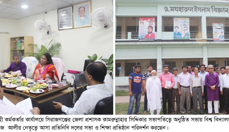 শামছুর রহমান শিশির ও ফারুক হাসান কাহার, শাহজাদপুর থেকে : আজ শনিবার সকালে মঞ্জুরি কমিশনের সদস্যবৃন্দ ও রবীন্দ্র বিশ্ববিদ্যালয়ের ভিসি ঘোষণা দেন চলতি বছরেই বিশ্বামানের এ বিশ্বাবদ্যালয়ের ছাত্র-ছাত্রী ভর্তি কার্যক্রম শুরু হবে। শাহজাদপুর উপজেলা নির্বাহী অফিসারের কার্যালয়ে সিরাজগঞ্জ জেলা প্রশাসক কামরুন্নাহার সিদ্দিকার সভাপতিত্বে অনুষ্ঠিত বৈঠকে উপস্থিত ছিলেন, বিশ্ব বিদ্যালয় মঞ্জুরি কমিশনের সদস্য প্রফেসর ড. এম শাহনেওয়াজ আলী ও তাঁর নেতৃতে আসা মঞ্জুরি কমিশনের পাবঃ বিশ্বঃ পরিচালক খন্দকার হামিদুর রহমান, অতিরিক্ত পরিচালক মোঃ কামাল হোসেন ও জনাব রবিউল ইসলাম সহকারি পরিচালক, পাবঃ বিশ্বঃ ইউজিসি, রবীন্দ্র বিশ্ববিদ্যালয়ের ভিসি ড. বিশ্বজিৎ ঘোষ, রেজিষ্টার ড. আব্দুল ওয়াহাব ও উপপরিচালক (অর্থ ও হিসাব) গোলাম সারোয়ার। ওই অনুষ্ঠিত সভায় রবীন্দ্র বিশ্ব বিদ্যালয়ের শিক্ষা কার্যক্রম চালুর বিষয়ে উচ্চ পর্যায়ের পরিদর্শক দল ও ভিসি মধ্যে দীর্ঘ সময় আলোচনা শেষে তারা জানান, এ বছরেই রবীন্দ্র বিশ্ববিদ্যালয়ের ভর্তি ও পাঠদান কার্যক্রম শুরু হতে যাচ্ছে। অস্থায়ীভাবে পাঠাদানের জন্য শাহজাদপুরের চারটি শিক্ষা প্রতিষ্ঠানের শ্রেণি কক্ষ তাঁরা পরিদর্শন করেন। সম্ভাব্য স্থান হিসেবে শাহজাদপুর সরকারি কলেজের ড. মযহারুল ইসলাম বিজ্ঞান ভবন, বঙ্গবন্ধু মহিলা কলেজ, শাহজাদপুর মহিলা কলেজ ও মওলানা সাইফুদ্দিন এহিয়া ডিগ্রী কলেজের ভবন পরিদর্শন করেন। পরিদর্শন শেষে সাংবাদিকদের এক প্রশ্নের জবাবে বিশ্ববিদ্যালয় মঞ্জুরি কমিশনের সদস্য প্রফেসর ড. শাহনেওয়াজ আলী বলেন, চারটি শিক্ষা প্রতিষ্ঠানই অত্যান্ত মান সম্পন্ন, এখানে বিশ্ববিদ্যালয়ের পাঠদান কার্যক্রম শুরু হলে কোন প্রকার অসুবিধা হবে না। শিক্ষা কার্যক্রম পরিচালনায় চারটি শিক্ষা প্রতিষ্ঠানই সন্তোষ জনক তাই আশা রাখছি এ বছরেই শিক্ষার্থী ভর্তি ও পাঠদান কার্যক্রম শুরু হবে। রবীন্দ্র বিশ্ব বিদ্যালয়ের ভিসিও এ ব্যাপারে সহমত প্রসন করেন।