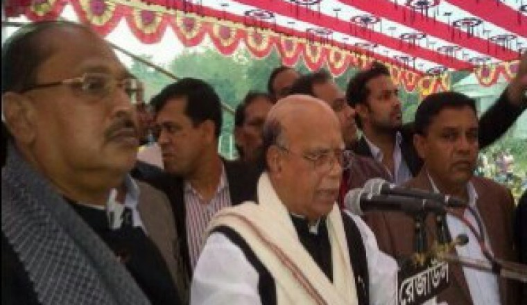নিজস্ব প্রতিবেদক : আওয়ামী লীগ প্রেসিডিয়াম সদস্য এবং স্বাস্থ্য ও পরিবার কল্যাণমন্ত্রী ও ১৪ দলের মুখপাত্র মোহাম্মদ নাসিম বলেছেন, শেখ হাসিনার উন্নয়ন দেখে মানুষ আবারও আওয়ামী লীগ লীগকেই ভোট দেবে। বঙ্গবন্ধুর বাংলাদেশে উন্নয়নের মার্কা নৌকা মার্কা। বিজয়ের মাসে আবারো আমরা বিজয়ী হব। যেমন করে বঙ্গবন্ধুর নেত্বতে বিজয়ের মাসে বাংলাদেশকে বিজয়ী করা হয়েছিল। বুধবার (১২ ডিসেম্বর) বিকেলে সিরাদিসেম্বর) শাহজাদপুর উপজেলার জামিরতা ডিগ্রী কলেজ মাঠে স্থানীয় আওয়ামী লীগ আয়োজিত এক নির্বাচনী জনসভায় প্রধান অতিথির বক্তব্যে তিনি এসব কথা বলেন। তিনি বলেন, আমরা খালি মাঠে গোল দিতে চাই না। ৩০ ডিসেম্বর একাদশ সংসদ নির্বাচনে মাঠে বিএনপির সাথে মোকাবিলা করে আমরা জয়ী হব। শেখ হাসিনা উন্নয়নের নেত্রী উল্লেখ করে স্বাস্থ্যমন্ত্রী বলেন, সারা বিশ্ব বাংলাদেশের উন্নয়নে প্রশংসা করেছে। ছিটমহল উদ্ধার, পদ্মা সেতু নির্মাণ, বিদ্যুৎ উৎপাদনসহ সব ক্ষেত্রেই উন্নয়নের মডেল এখন বাংলাদেশ।তিনি নৌকা মার্কায় স্বপনকে জয়ী করার আহ্বান জানিয়ে এই এলাকায় একটি হাসপাতাল নির্মাণের প্রতিশ্রুতি দেন । পোরজনা ইউ পি চেয়ারম্যান জাহিদুল ইসলাম মুকুলের সভাপতিত্বে নির্বাচনী জনসভায় আরও বক্তব্য দেন, সিরাজগঞ্জ-৬ আসনের আওয়ামী লীগের মনোনীত প্রার্থী হাসিবুর রহমান স্বপন, বাংলাদেশ সাম্যবাদী দলের সাধারণ সম্পাদক সাবেক মন্ত্রী দিলীপ বড়ুয়া, বাসদের কেন্দ্রিয় নেতা রেজাউর রশিদ খাজা, সিরাজগঞ্জ জেলা আওয়ামী লীগের সহ-সভাপতি কে এম হাসান আলী, সদস্য ও উপজেলা আওয়ামী লীগের আইন বিষয়ক সম্পাদক এ্যাড. শেখ মোঃ আব্দুল হামিদ লাবলু, কেন্দ্রীয় যুবলীগের আন্তর্জাতিক বিষয়ক সম্পাদক ড. সাজ্জাদ হায়দার লিটন, জেলা যুবলীগের আব্দুল হাকিম, উপজেলা আওয়ামী লীগের সাধারণ সম্পাদক আজাদ রহমান প্রমুখ।