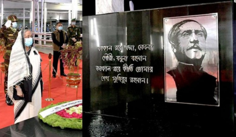 জাতীয় শোক দিবস ও ৪৫তম শাহাদাতবার্ষিকী উপলক্ষে জাতির জনক বঙ্গবন্ধু শেখ মুজিবুর রহমানের প্রতিকৃতিতে ফুল দিয়ে শ্রদ্ধা জানিয়েছেন প্রধানমন্ত্রী ও আওয়ামী লীগ সভাপতি শেখ হাসিনা। শনিবার (১৫ আগস্ট) সকালে ধানমন্ডি ৩২ নম্বরে বঙ্গবন্ধু স্মৃতি জাদুঘরের সামনে বঙ্গবন্ধুর প্রতিকৃতিতে পুষ্পস্তবক অর্পণের মাধ্যমে শ্রদ্ধা নিবেদন করেন তিনি। এরপর বঙ্গবন্ধুর প্রতি সম্মান জানিয়ে কিছুক্ষণ নীরবে দাঁড়িয়ে থাকেন বঙ্গবন্ধুকন্যা প্রধানমন্ত্রী শেখ হাসিনা। এ সময় সশস্ত্র বাহিনী একটি চৌকস দল তাকে রাষ্ট্রীয় সালাম জানায়। বিউগলে বেজে ওঠে করুণ সুর। পরে ১৫ আগস্টের শহীদদের রুহের মাগফিরাত ও শান্তি কামনা করে বিশেষ মোনাজাত করা হয়। এ সময় প্রধানমন্ত্রীর সঙ্গে ছিলেন তার কন্যা সায়মা ওয়াজেদ হোসেন পুতুল। শ্রদ্ধা নিবেদনের পর বঙ্গবন্ধু ভবনের ভেতরে গিয়ে বেশ কিছুক্ষণ অবস্থান করেন প্রধানমন্ত্রী। এরপর প্রধানমন্ত্রী শেখ হাসিনা ধানমন্ডি থেকে বনানী কবরস্থানে যান। সেখানে তার মা বঙ্গমাতা শেখ ফজিলাতুন্নেছা মুজিব, ভাই শেখ কামাল, শেখ জামাল ও শেখ রাসেলসহ ১৫ আগস্টের শহীদদের কবরে ফুল দিয়ে শ্রদ্ধা জানান প্রধানমন্ত্রী। এছাড়া জাতীয় শোক দিবসে আওয়ামী লীগের কর্মসূচির মধ্যে রয়েছে- সূর্য উদয়ের সঙ্গে সঙ্গে বঙ্গবন্ধু ভবন এবং কেন্দ্রীয় কার্যালয়সহ সারা দেশে সংগঠনের সব স্তরের কার্যালয়ে জাতীয় ও দলীয় পতাকা অর্ধনমিতকরণ ও কালো পতাকা উত্তোলন। এরপর বাদ জোহর দেশের সব মসজিদে দোয়া ও মিলাদ মাহফিল ও সুবিধামতো সময়ে মন্দির, প্যাগোডা, গির্জা, উপাসনালয়ে বিশেষ প্রার্থনা অনুষ্ঠিত হবে। দুপুরে অসচ্ছল, এতিম ও দুস্থ মানুষদের মাঝে খাদ্য বিতরণ করা হবে। বঙ্গবন্ধু শেখ মুজিবুর রহমান ১৯২০ সালের ১৭ মার্চ তৎকালীন বৃহত্তর ফরিদপুর জেলার গোপালগঞ্জ মহকুমার টুঙ্গিপাড়ায় জন্মগ্রহণ করেন। তিনি ছাত্রাবস্থায় রাজনীতিতে জড়িয়ে পড়েন। বায়ান্নর ভাষা আন্দোলনে তিনি ছিলেন সংগ্রামী নেতা। শেখ মুজিবুর রহমান বাঙালি জাতির মুক্তি সনদ ৬ দফার প্রণেতা ছিলেন। সত্তরের নির্বাচনে অংশ নিয়ে বঙ্গবন্ধু আওয়ামী লীগকে এ দেশের গণমানুষের আশা-আকাঙ্ক্ষার প্রতীকে পরিণত করেন। পাকিস্তানের সামরিকজান্তার বিরুদ্ধে গণতান্ত্রিক আন্দোলন গড়ে তুলে ষাটের দশক থেকে তিনি বাঙালি জাতীয়তাবাদের অগ্রনায়কে পরিণত হন। ১৯৭১ সালের ৭ মার্চ ঢাকার তৎকালীন রেসকোর্স ময়দানে লাখো জনতার উত্তাল সমুদ্রে বঙ্গবন্ধু বজ কণ্ঠে ঘোষণা করেন, ‘এবারের সংগ্রাম আমাদের মুক্তির সংগ্রাম, এবারের সংগ্রাম স্বাধীনতার সংগ্রাম।’ এ ঘোষণায় উদ্দীপ্ত, উজ্জীবিত জাতি পাকিস্তানি হানাদার বাহিনীর বিরুদ্ধে ঝাঁপিয়ে পড়ে। ছিনিয়ে আনে দেশের স্বাধীনতা। বঙ্গবন