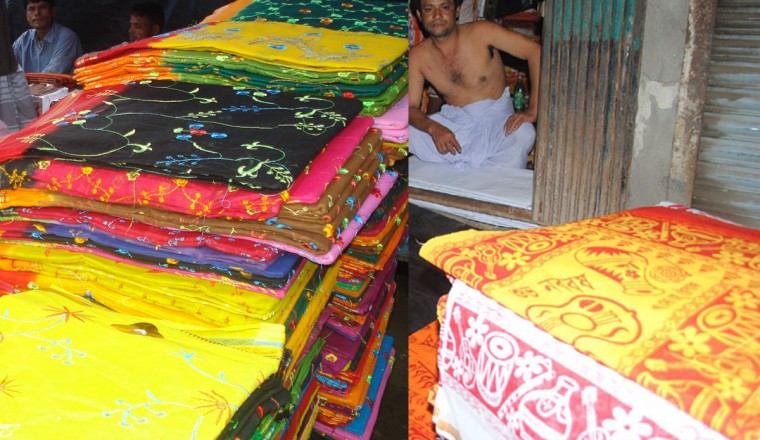 শামছুর রহমান শিশির : পহেলা বৈশাখ উদযাপন উপলক্ষে দেশের তাঁতশিল্পের কেন্দ্রবিন্দু শাহজাদপুরসহ দেশের তাঁতসমৃদ্ধ এলাকার তাঁতপল্লী গুলোতে বর্ষবরণের জন্য প্রস্তুতকৃত ছোট বড়দের বৈশাখী তাঁতের কাপড় ব্যাপক প্রশাংসা কুড়িয়েছে। বাংলা নববর্ষের প্রথম দিনে দেশীয় আবহমান গ্রাম বাংলার নানা ঐহিত্যের প্রতিক ঢোল, তবলা, ফুল, ফল, লতাপাতা, একতারা, বাঁশি, বালতি সম্বলিত দৃষ্টিনন্দন, বাহারী ডিজাইন, বৈশাখী তাঁতবস্ত্র তৈরি, প্রক্রিয়াকরণ, মোড়কজাত ও বিপননে দেশের লাখ লাখ তাঁত মালিক ও তাঁত শ্রমিকেরা শেষ মুহুর্তে মহাব্যস্ত সময় অতিবাহিত করছেন। দেশীয় গ্রে-তাঁতের কাপড়ের ওপর বৈশাখী উৎসবে নতুন আমেজ যুক্ত করতে তাঁতশিল্পসমৃদ্ধ শাহজাদপুরসহ, পাবনা, সিরাজগঞ্জ, টাঙ্গাইল, কুষ্টিয়া, নরসিংন্দী, যশোর, ঢাকা, মিরপুরসহ তাঁতপল্লীগুলোতে ও গ্রে-তাঁতের কাপড়ে প্রিন্ট করার জন্য সংশ্লিষ্টদের কর্মচাঞ্চ্যলতা আর হস্তচালিত তাঁতের খট্খট্ শব্দে মুখরিত ও প্রাঞ্জলিত হয়ে উঠেছে তাঁতসমৃদ্ধ জনপদ। এমনিতেই গত প্রায় সাড়ে ৩ মাস ধরে ঐহিত্যবাহী তাঁতবস্ত্র ব্যবসায়ে চরম মন্দাবস্থা চলছে। কিন্তু পহেলা বৈশাখে দেশে বৈশাখী তাঁতের কাপড়ের ব্যাপক চাহিদা বেড়েছে। এতে তাঁতীরা তাঁতবস্ত্র উৎপাদনে ও প্রিন্ট কারখানাগুলোতে সর্বশেষ সময়ে সর্বাত্বক প্রচেষ্টা চালাচ্ছেন। দেশে হস্তচালিত তাঁতে উৎপাদিত শাড়ি,লুঙ্গি ও গামছার মোট চাহিদার সিংহভাগই শাহজাদপুর সহ পাবনা-সিরাজগঞ্জ, টাঙ্গাইল ও নরসিন্দী জেলায় উৎপাদিত হয়ে থাকে। এখানে উৎপাদিত তাঁতের শাড়ী,লুঙ্গী গামছার ব্যাপক কদর রয়েছে দেশ ও বিদেশে। সারা বছরের এ সময় বৈশাখী দেশীয় তাঁতবস্ত্রের ব্যাপক চাহিদা দেখা দেয়। আর সেই চাহিদার কথা মাথায় রেখে তাঁতী ও শ্রমিকরা নিত্যনতুন ডিজাইনের বৈশাখী কাপড় উৎপাদনে সর্চোচ্চো ব্যস্ত সময় অতিবাহিত করছেন। আজ বুধবার সন্ধ্যায় উত্তরাঞ্চলের সর্ববৃহৎ শাহজাদপুর তাঁত কাপড়ের হাট ও মণিরামপুর বাজারস্থ ইউসুফ প্লাজার বৈশাখী কাপড় পাইকারী বিক্রয়ের প্রতিষ্ঠান রাবেয়া বস্ত্র বিতান, মেরাজ বস্ত্র বিতান, হাজী বস্ত্রালয়, সেলিনা বস্ত্রালয়, ইউসুফ বস্ত্রালয়, লিটন শাড়ী ঘর পরিদর্শন ও বিক্রেতা মেরাজ সরকার, রফিকুল ইসলাম রুবেলসহ বৈশাখী বস্ত্র উৎপাদনকারী তাঁতীরা জানিয়েছেন, ‘পহেলা বৈশাখকে কেন্দ্র করে তারা বৈশাখী শাড়ি কাপড়ের যে মজুদ গড়ে তুলেছিলেন তা গত সপ্তাহেই শেষ হয়ে গেছে। ব্যাপক চাহিদা রয়েছে ছোটদের কাপড়ের। তাঁতীরা জানিয়েছেন, পহেলা বৈশাখকে কেন্দ্র করে শাহজাদপুর, উল্লাপাড়া, রায়গঞ্জ, বেলকুচি, কামারখন্দ, চৌহালী, সিরাজগঞ্জসদর এবং পাবনা জেলার বেড়া, সাঁথিয়া, সুজানগর ও পাবনা সদরের জালালপুরের শত শত সচল তাঁতকারখানা গ