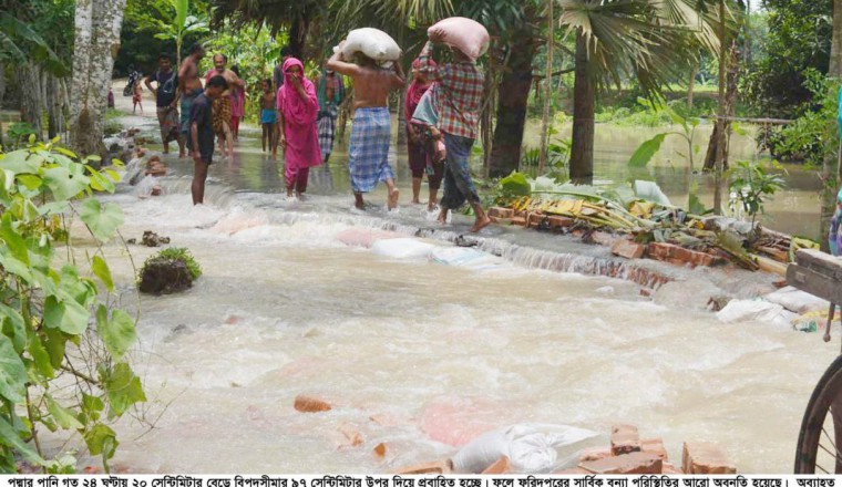 ক্রমশই দিশেহারা হয়ে পড়ছে বন্যাদুর্গতরা। একে একে তিন দফা বন্যায় পানিবন্দি ১১ লাখেরও বেশি পরিবার এখন পুরোপুরি বিপর্যস্ত। মানুষের হাতে কাজ নেই। নগদ টাকাও নেই। বন্যাকবলিত এলাকায় দেখা দিয়েছে তীব্র খাবার সংকট। বহু মানুষ এখনও বিভিন্ন শিক্ষাপ্রতিষ্ঠানে খোলা আশ্রয়কেন্দ্রে অবস্থান করছে। অনেকে আশ্রয় নিয়েছে বন্যা নিয়ন্ত্রণ বাঁধ, রাস্তার পাশে, আবার কেউ আশ্রয় নিয়েছে ব্রিজের ওপরে। পানিবন্দি মানুষের সঙ্গে কথা বলে এসব তথ্য জানা গেছে। এদিকে পানি উন্নয়ন বোর্ড সূত্র জানিয়েছে, বন্যার পানি পুরোপুরি নামতে আরও সময় লাগবে কমপক্ষে ১০ থেকে ১২ দিন। এরপর মানুষজন নিজের ঘরে ফিরেই বসবাস শুরু করতে পারবে না। ক্ষতিগ্রস্ত বাড়িঘর মেরামত করতে হবে। বাড়িঘরগুলোকে বসবাসের উপযোগী করে তুলতে হবে। কাজেই খুব সহজে এই দুর্ভোগ মানুষের পিছু ছাড়ছে না। দুর্যোগ ব্যবস্থাপনা ও ত্রাণ মন্ত্রণালয়ের অধীনস্থ বন্যা পূর্বাভাস ও সতর্কীকরণ কেন্দ্র জানিয়েছে, সোমবার (৩ আগস্ট) পর্যন্ত দেশের ৩৩টি জেলা বন্যাকবলিত। বন্যায় পানিবন্দি ১১ লাখ পরিবারের ৫৪ লাখ ৪৮ হাজারের বেশি মানুষ। বন্যা আক্রান্ত উপজেলার সংখ্যা ১৫৮টি। এর মধ্যে সবচেয়ে বেশি খারাপ অবস্থায় রয়েছে জামালপুর জেলা। জামালপুর জেলা প্রশাসন সূত্র জানিয়েছে, সাতটি উপজেলার ৫৯টি ইউনিয়ন বন্যাকবলিত হয়েছে। একই সঙ্গে ৮টি পৌরসভাও বন্যাকবলিত হয়েছে। সমগ্র জেলার ৯ লাখ ৯৪ হাজার ৭০১ জন মানুষ পানিবন্দি অবস্থায় রয়েছে। ইতিমধ্যেই জেলার ১২ হাজার ৪২৮ হেক্টর জমির ফসলের ক্ষতি হয়েছে। সেখানকার বাড়িঘর, স্কুল-কলেজ-মাদ্রাসা এখনও পানির নিচে। রাস্তা মাঠ-ঘাট এখনও জলমগ্ন। টানা দেড় মাসের বেশি সময় ধরে চলমান বন্যায় জেলার মানুষজন চরম কষ্টে আছেন। মাদারীপুর জেলা প্রশাসন সূত্র জানিয়েছে, ঈদের দিনেই মাদারীপুরের শহর রক্ষা বাঁধে ধস নেমেছে। বাঁধের ২০ মিটার আড়িয়াল খা নদে বিলীন হয়ে গেছে। শনিবার বিকালে শহরের লঞ্চঘাট এলাকায় বেড়িবাঁধসহ ওয়াকওয়ের একটি অংশ বিলীন হয়েছে। ভাঙনের মুখে রয়েছে লঞ্চঘাট, পুলিশ ফাঁড়ি, পুরান শহর প্রাথমিক বিদ্যালয়। সিলেটের জেলা প্রশাসন সূত্র জানায়, কুশিয়ারা নদীর ফেঞ্চুগঞ্জ পয়েন্টে পানি কমতে শুরু করেছে। ফলে জেলার বন্যা পরিস্থিতির উন্নতি হচ্ছে। কিন্তু মানুষের দুর্ভোগ কমছে না। এলাকার মানুষের সঙ্গে কথা বলে জানা গেছে, বন্যাকবলিত মানুষের ঘরে খাবার নাই। সরকারি সহায়তা কেউ পেয়েছে, কেউ পায়নি। যা পেয়েছে তা পর্যাপ্ত নয় বলে অভিযোগ করেছেন কেউ কেউ। মানুষের হাতে কাজ নেই। উপার্জন সক্ষম মানুষটি দীর্ঘদিন বেকার থাকায় আর্থিক সংকটে শত শত পরিবার। হাতে জমানো টাকাও শেষ হয়েছে বহু আগে। সবকিছু মিলিয়ে স্ত্রী সন্তান পরিবার