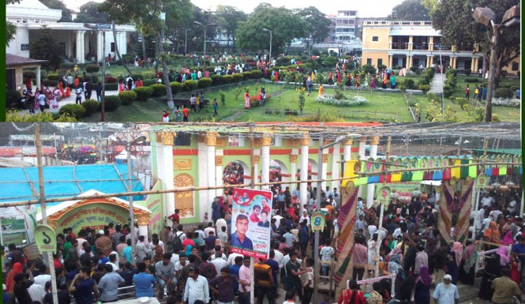 শামছুর রহমান শিশির : আজ রোববার বাংলা নববর্ষের প্রথম দিন অর্থাৎ পহেলা বৈশাখ। এদিন সিরাজগঞ্জ জেলার শাহজাদপুর উপজেলার প্রাণকেন্দ্র শাহজাদপুর কাপড়ের হাট সংলগ্ন এলাকায় কবিগুরু রবীন্দ্রনাথ ঠাকুরের কাছারিবাড়ি প্রাঙ্গণে বৈশাখী সাজে দেশী বিদেশী রবীন্দ্রভক্ত পর্যটকদের ঢল উপচে পড়েছে। বর্ণাঢ্য বৈশাখী সাজে তাদের পদচারনায় ও মিলনমেলায় মুখরিত ও প্রাঞ্জলিত হয়ে ওঠে বিশ্বকবির স্মৃতিবিজড়িত কাছাড়িবাড়ি প্রাঙ্গণসহ আশপাশের অঞ্চল। বিশ্বকবির স্মৃতিবিজড়িত শাহজাদপুরের কাছাড়িবাড়িতে এসে ভক্তরা কবিগুরুর ব্যবহৃত বসতবাড়ি, আসবাবপত্র ও বিভিন্ন সরঞ্জামাদি দেখে তৃপ্তি ঢেঁকুর ফেলে ঘরে ফিরছেন। অতীতের তুলনায় এদিনের পহেলা বৈশাখে কবিগুরুর কাছারিবাড়িতে রেকর্ড পরিমান রবীন্দ্রভক্ত দেশী-বিদেশী নারী, পুরুষ, শিশু কিশোর, যুবক-যুবতীর সমাগম ঘটে। পহেলা বৈশাখে কবিগুরুর কাছারিবাড়ি এলাকা ঘুরে দেখা যায় কাছারিবাড়িতে তিল ধারনের যায়গা নেই এমন অবস্থা। প্রচন্ড ভীড় উপেক্ষা করেও সুশৃংখলভাবে ভক্তবৃন্দ কবিগুরুর ব্যবহৃত বিভিন্ন তৈজসপত্র ও ছবি দিয়ে সাজানো রবীন্দ্র স্মৃতি যাদুঘর পরিদর্শন করেন। জানা যায়, প্রতি বছরের নভেম্বর থেকে মার্চ পর্যন্ত কবিগুরু রবীন্দ্রনাথ ঠাকুরের শাহজাদপুরের কাছাড়িবাড়িতে অসংখ্য দেশী বিদেশী পর্যটকের আগমন ঘটে। আবহাওয়া অনুকূলে থাকায় পহেলা বৈশাখে এখানে বৈশাখী সাজে এদিনও জনমানুষের ঢল পরিলক্ষিত হয়। পহেলা বৈশাখ উদযাপনের সাথে শাহজাদপুর হাইস্কুল মাঠে শিল্প ও বাণিজ্য মেলা চলমান থাকায় পুরো শাহজাদপুর পর্যটন শহরে পরিণত হয়েছে। জানা গেছে, শাহজাদপুরের কাছারিবাড়ি রবীন্দ্রনাথের স্মৃতিবিজড়িত একটি ঐতিহাসিক স্থান ও পর্যটন কেন্দ্র। ইতিহাস থেকে জানা যায়, তিন তৌজির অন্তর্গত ডিহি শাহজাদপুরের জমিদারী একদা নাটোরের রানী ভবানীর জমিদারীর অংশ ছিল। ১৮৪০ সালে শাহজাদপুরের জমিদারী নিলামে উঠলে কবিগুরু রবীন্দ্রনাথ ঠাকুরের পিতামহ প্রিন্স দ্বারকানাথ ঠাকুর মাত্র তের টাকা দশ আনায় এই জমিদারী কিনে নেন। জমিদারীর সাথে সাথে ওই কাছারিবাড়িও ঠাকুর পরিবারের হস্তগত হয়েছিল বলে ধারণা করা হয়। আগে কাছারিবাড়ির মালিক ছিল নীলকর সাহেবরা। ১৮৯০ সাল থেকে ১৮৯৬ সাল পর্যন্ত কবিগুরু রবীন্দ্রনাঠ ঠাকুর জমিদারী দেখাশোনার কাজে শাহজাদপুরে সাময়িকভাবে আসা যাওয়া ও বসবাস করতেন। তিনি স্থায়ীভাবে বসবাস করতেন কুষ্টিয়ার শিলাইদহে। সম্ভবত এই কারণেই শিলাইদহে তাঁর বাসগৃহ কুঠিবাড়ি নামে এবং শাহজাদপুরের বাড়িটি কাছারিবাড়ি নামে পরিচিত। শাহজাদপুরে তিনি ঘুরে বেড়িয়েছেন পালকিতে, নৌকায় ও পায়ে হেটে। শাহজাদপুর পৌর এলাকার প্রাণকেন্দ্র দ্বারিয়াপুর বাজারে অবস্থি